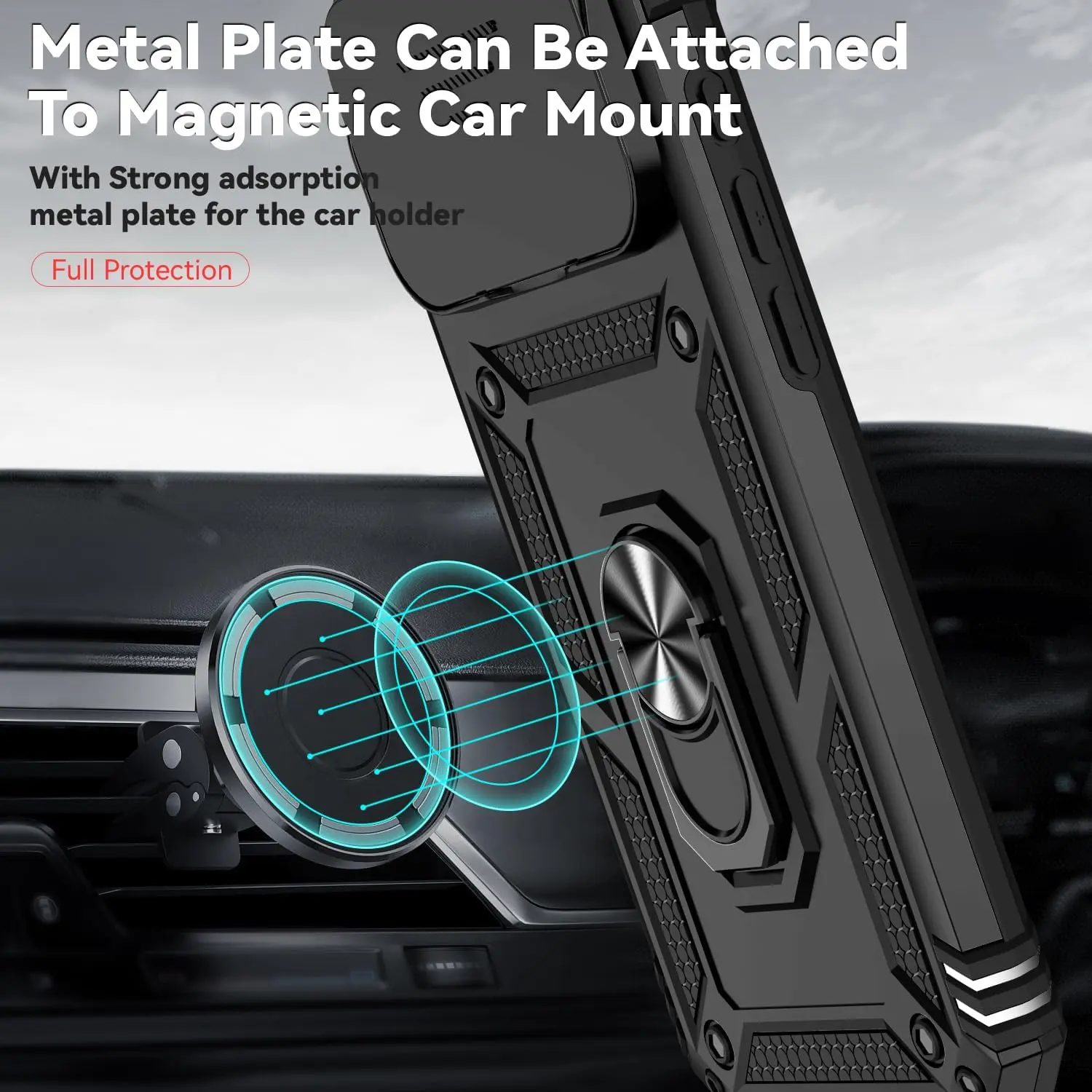 With built-in metal magnetic sheet for stable adsorption, which can be directly adsorbed to the magnetic car mount holder. (Not includes the magnetic car mount holder)