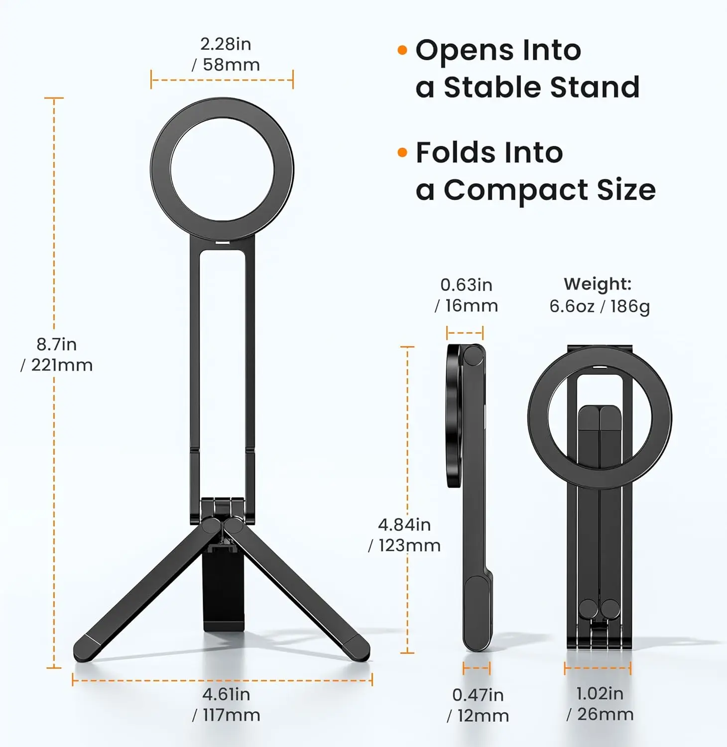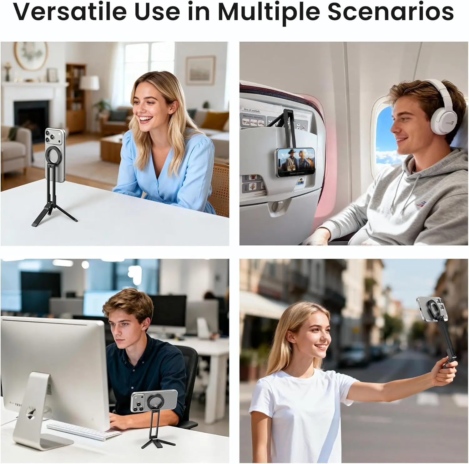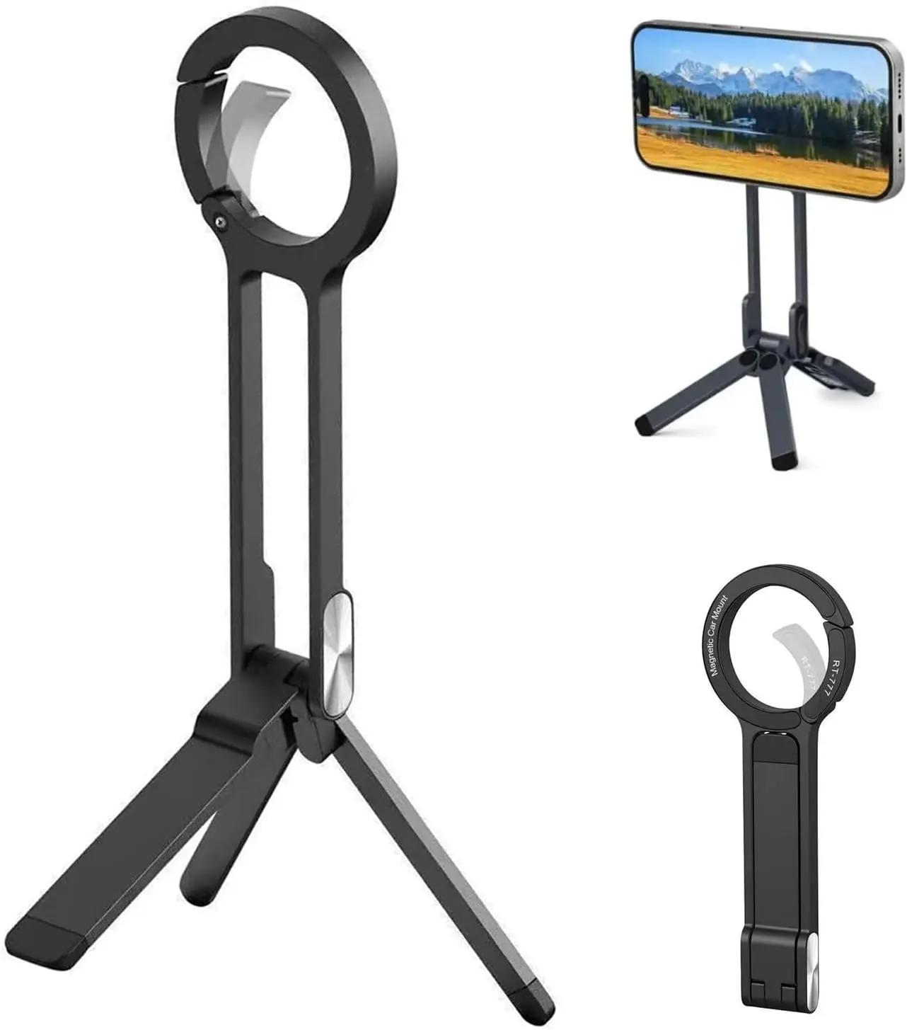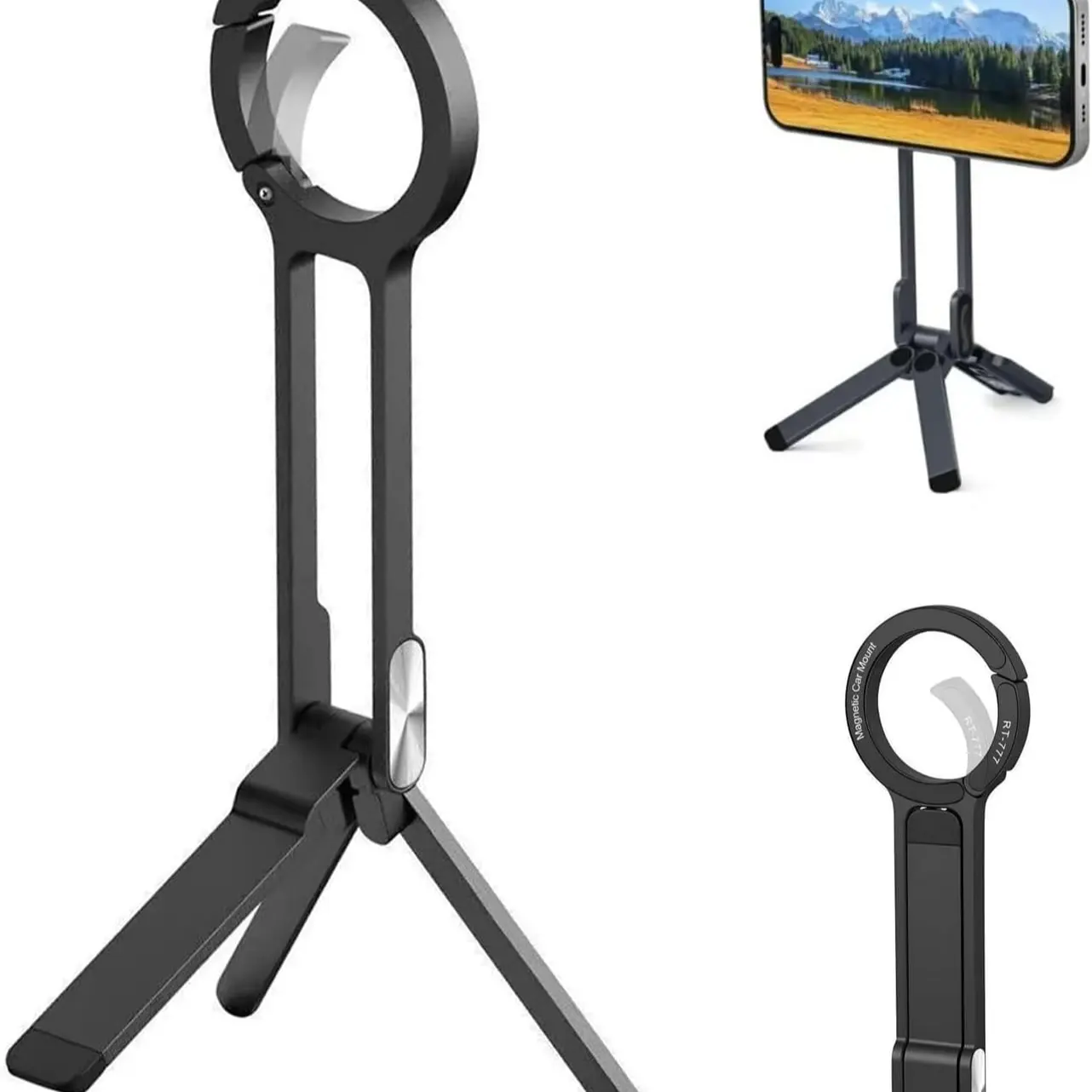 Magnetic Foldable Phone Tripod, Portable Adjustable Stand for iPhone MagSafe, Desk Travel Selfie Live Stream Holder