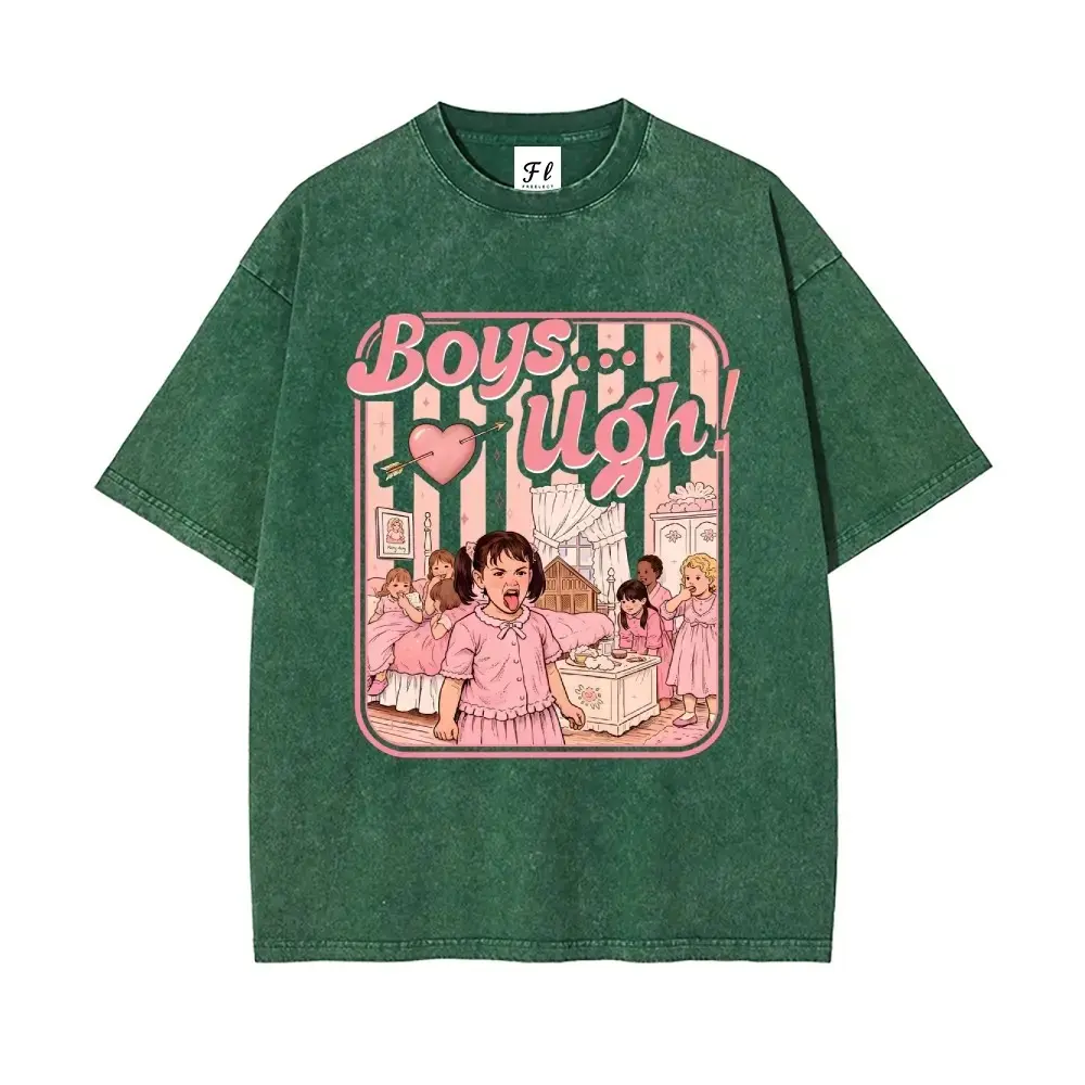 Unisex “Boys...Ugh!” Funny Valentine Vintage Washed T-Shirt – 90s Movie Quote Graphic Tee. This shirt features a nostalgic 90s movie quote, perfect for Valentine's Day. It's a fun, vintage-style tee that adds a playful touch to any outfit. Ideal for those who appreciate retro fashion and humor.