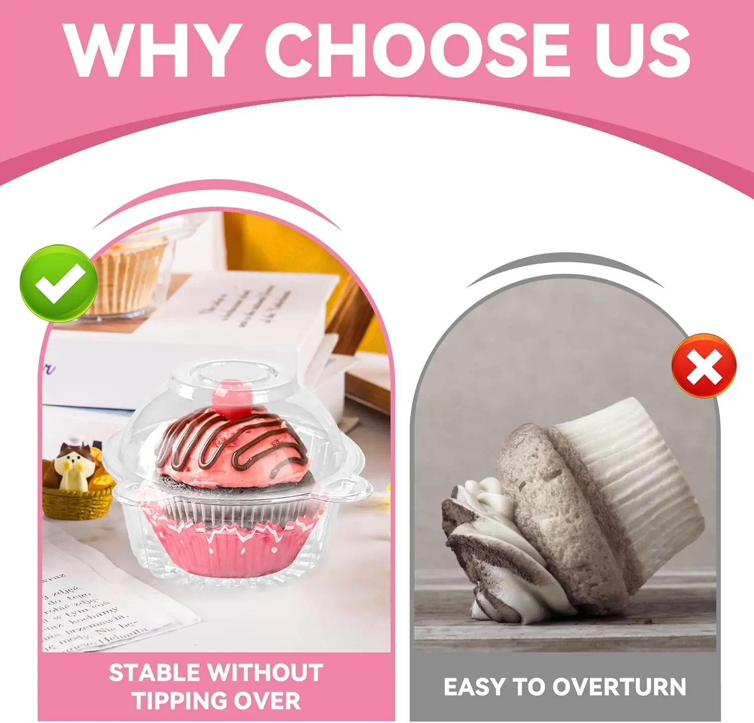 ·Package Includes: 50 pack plastic individual cupcake containers, make each cupcake or muffin stand out and look so appealing. Great for business and celebrations.