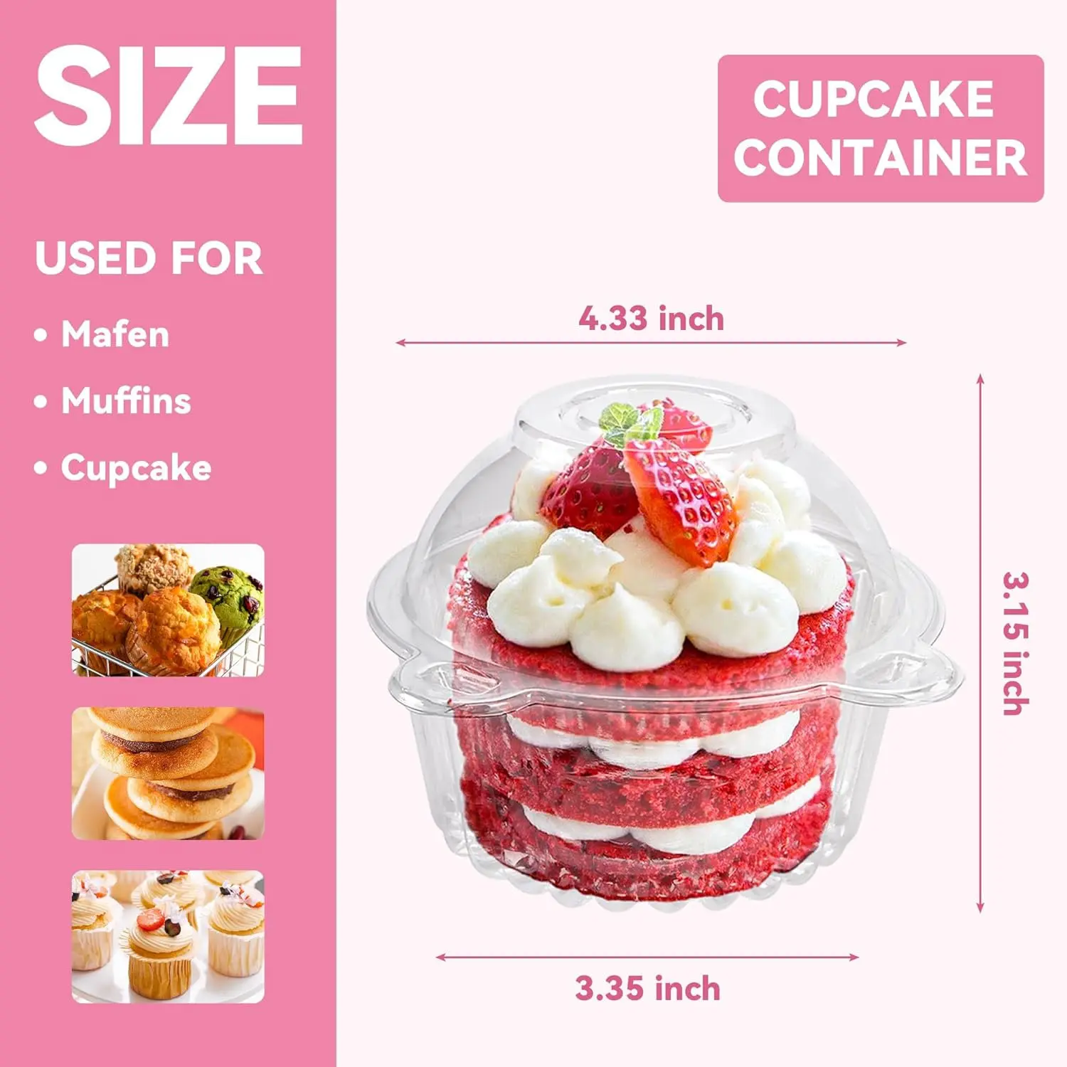 50 Pack Individual Cupcake Containers Plastic Cupcake Holders Deep Dome Muffin Containers