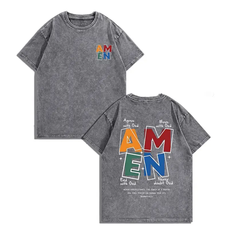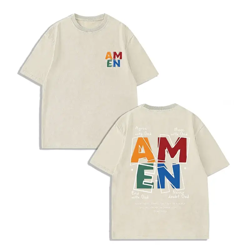 ·Design Features: This T-shirt features a classic letter header design with "AMEN," "Agree With God," "Move With God," "End With God," and "Never Doubt God." It includes a shoulder drop design and a God Bless You message.