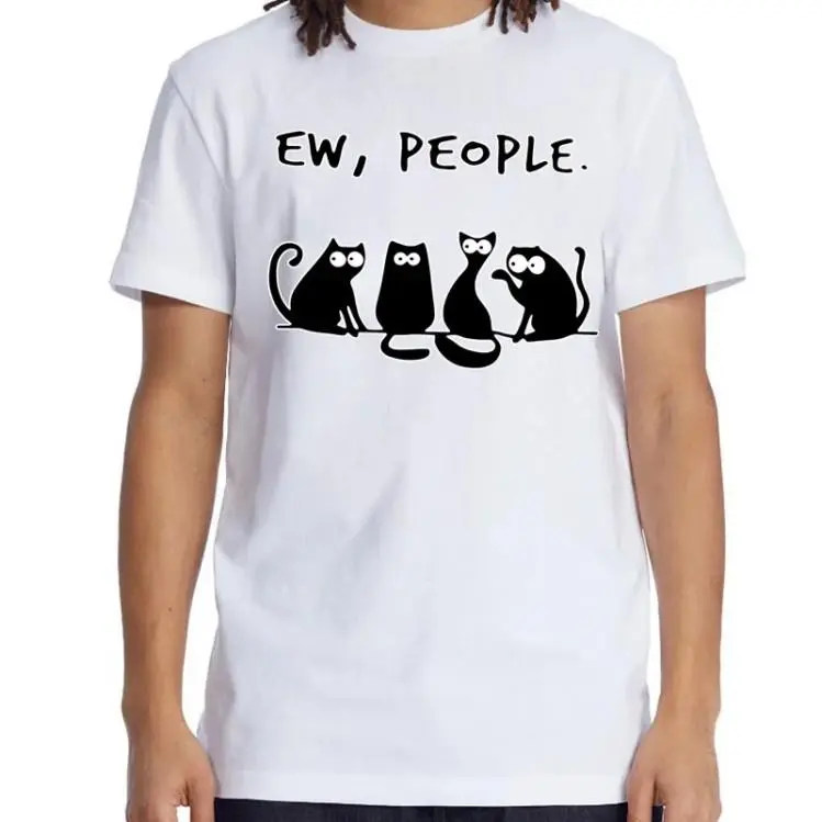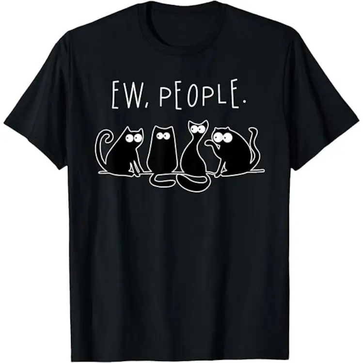 Ew People Funny Cat Graphic Tee Womens Casual Crewneck Short Sleeve T Shirt Soft Comfy Relaxed Fit Cute Trendy Streetwear For Everyday Outfit