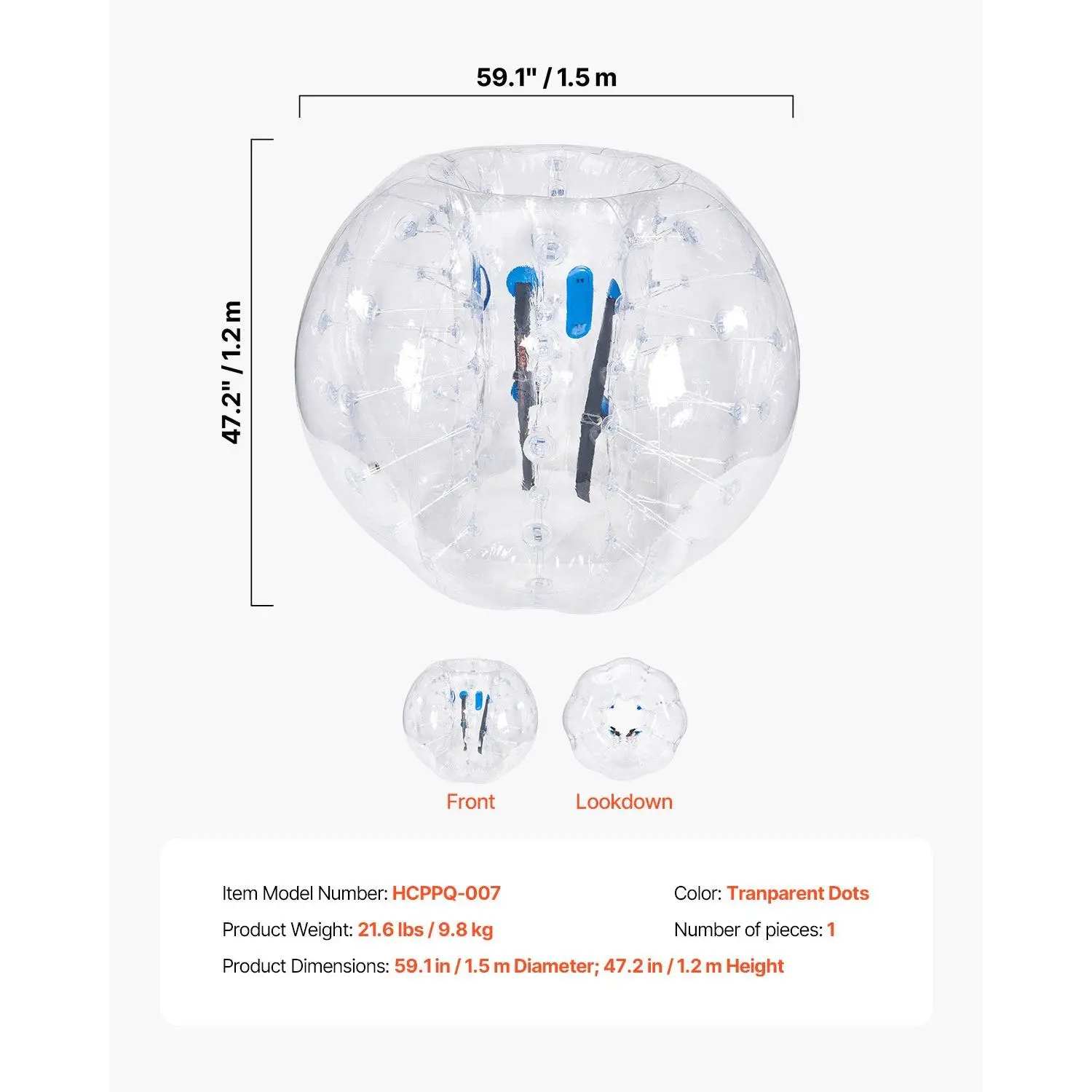 Our meticulously designed bumper balls, with easy-to-wear feature, offer you great convenience for game time. They are suitable for teenagers and adults, with a height range of 4.9 ft - 6 ft. Choose our bumper balls now, and enjoy the joy with friends!