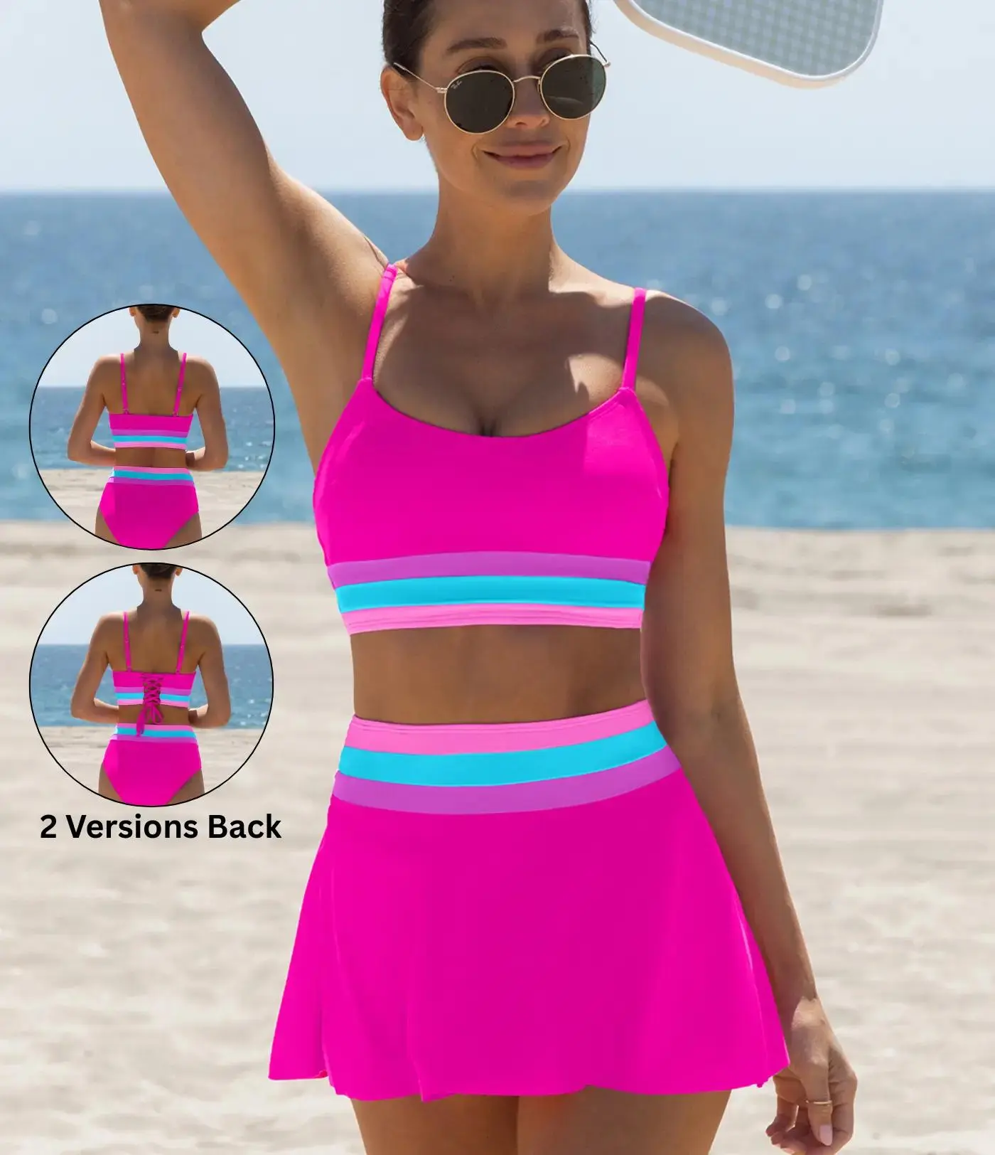 β’ Set Includes: Bikini top, bikini bottom, matching skirt