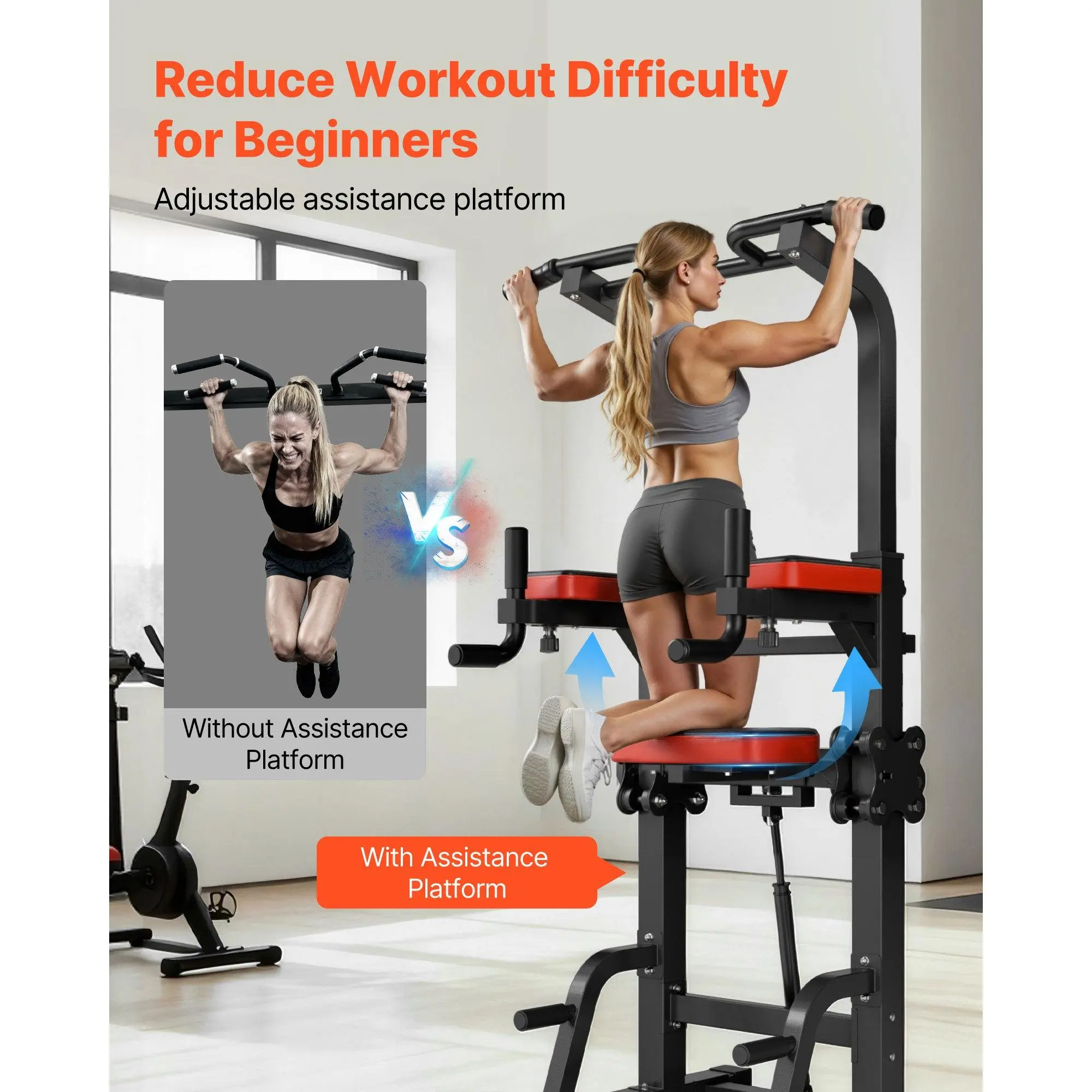 With 9 adjustable height levels, this pull up station easily adapts to users of various heights and fitness goals. From children to adults, beginners to pros, everyone can adjust the height to suit their training goals, making workouts comfortable and effective for the whole family.