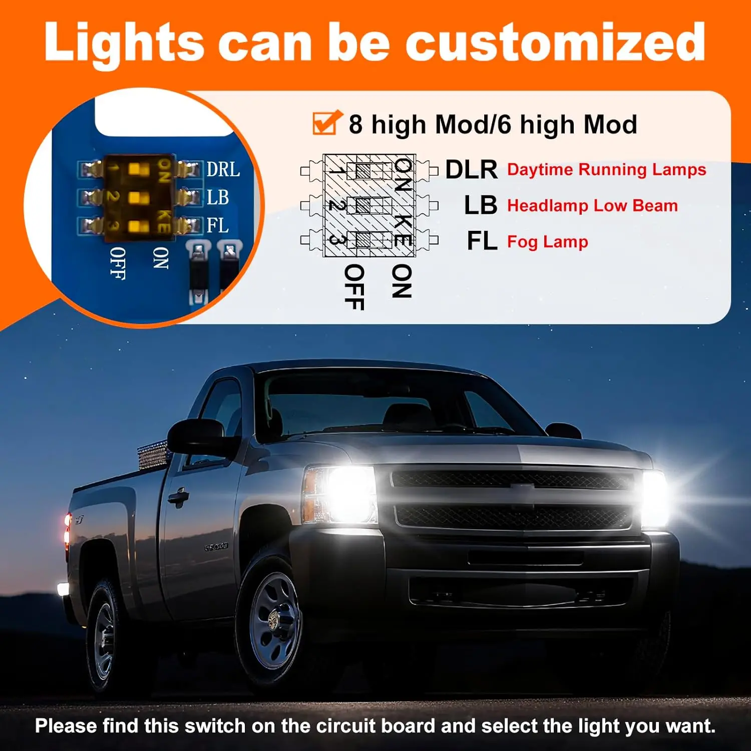 8 High Mod & 6 High Mod Customizable DRL Light Module for GM Vehicles, Compatible with 2003-2007 Chevy Silverado & GMC Sierra 1500/2500/3500 Classic