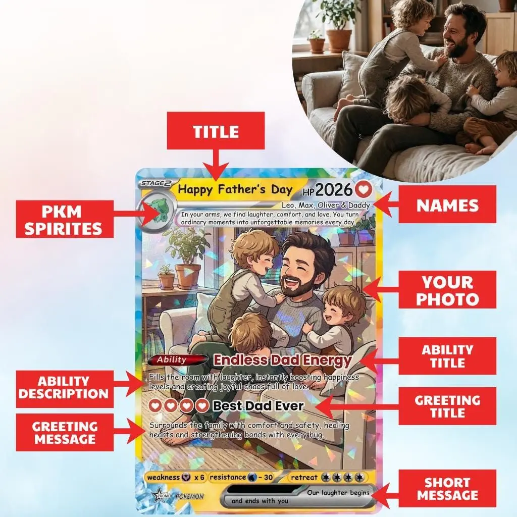 Personalized Pokemon Card From Photo | Custom Father's Day Hologram Card, Birthday Anniversary Gift