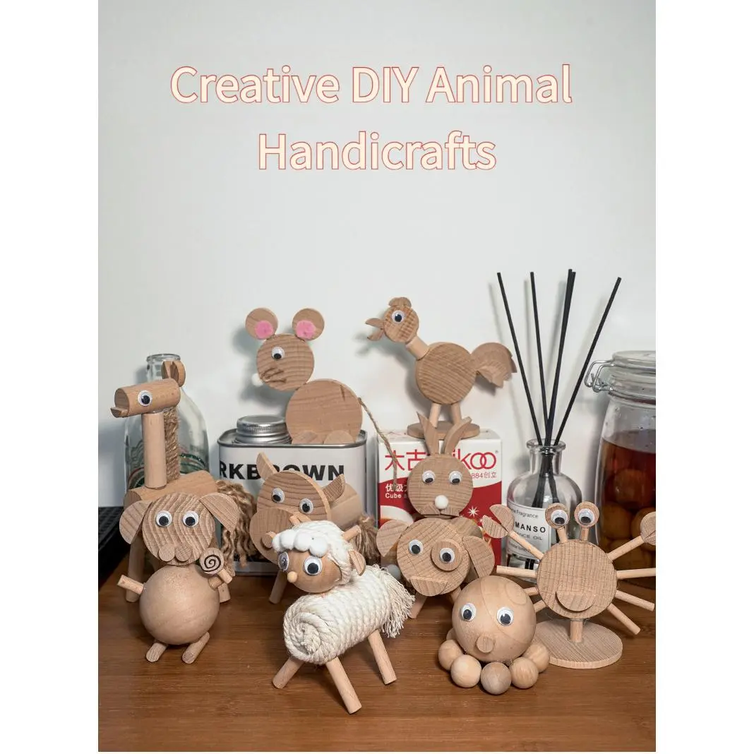 Creative children's DIY material kit, wooden animal stakes and branches small ornaments, handmade dolls and decorations for kindergarten