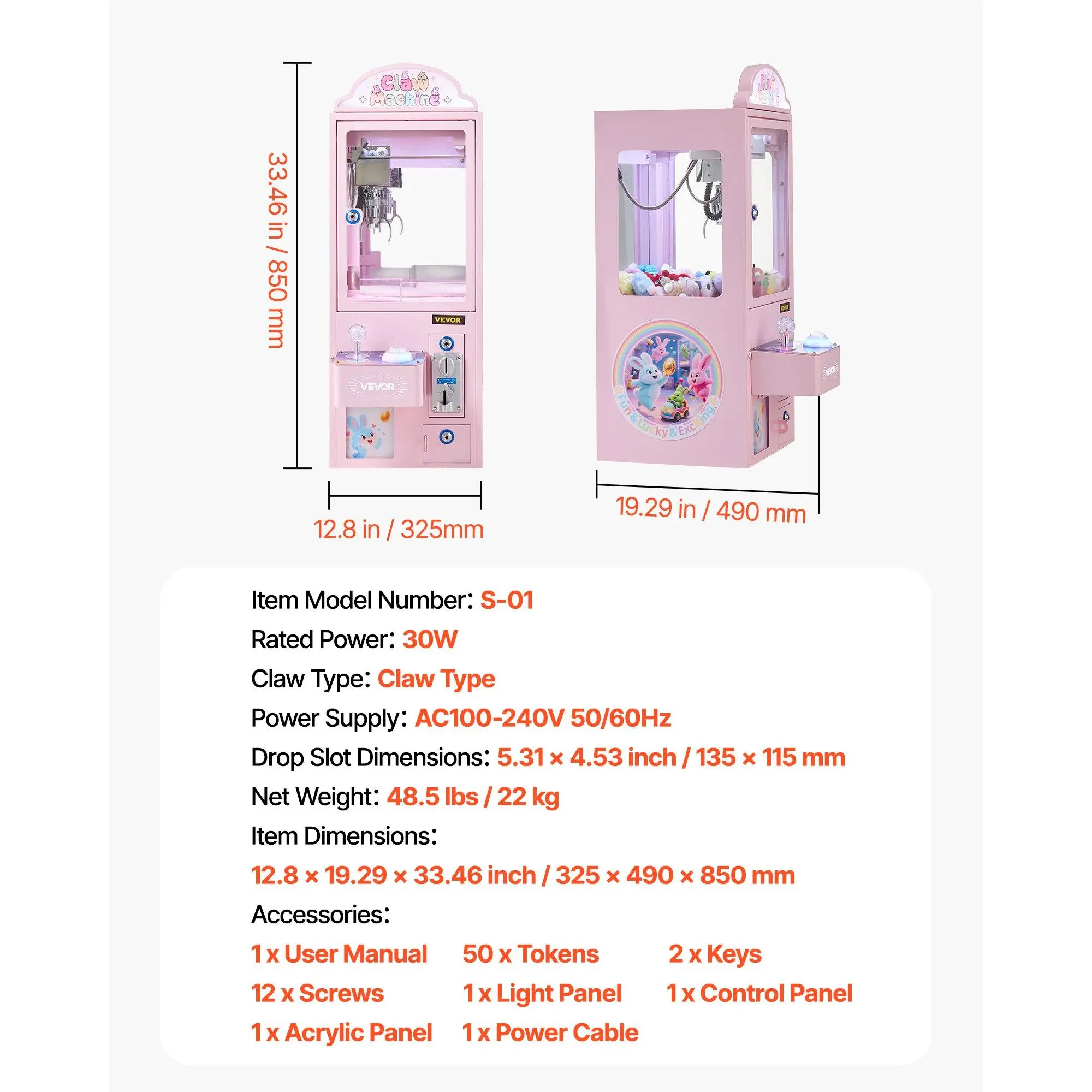 This claw machine boasts a precision steel claw with adjustable grip strength for easy handling of dolls of all sizes. The responsive joystick and clear control panel allow for precise direction and force control, boosting success rates. Enjoy immersive fun with the VEVOR claw machine immediately!