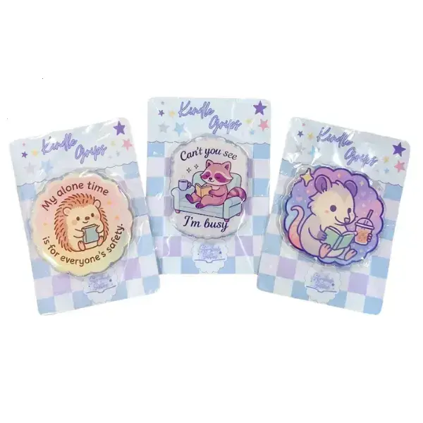 Cute Introvert Animal MagSafe Phone Grip Set, Cozy Hedgehog Raccoon Pop Socket, Bookish Kindle Holder, Reading Accessory Gift for Readers