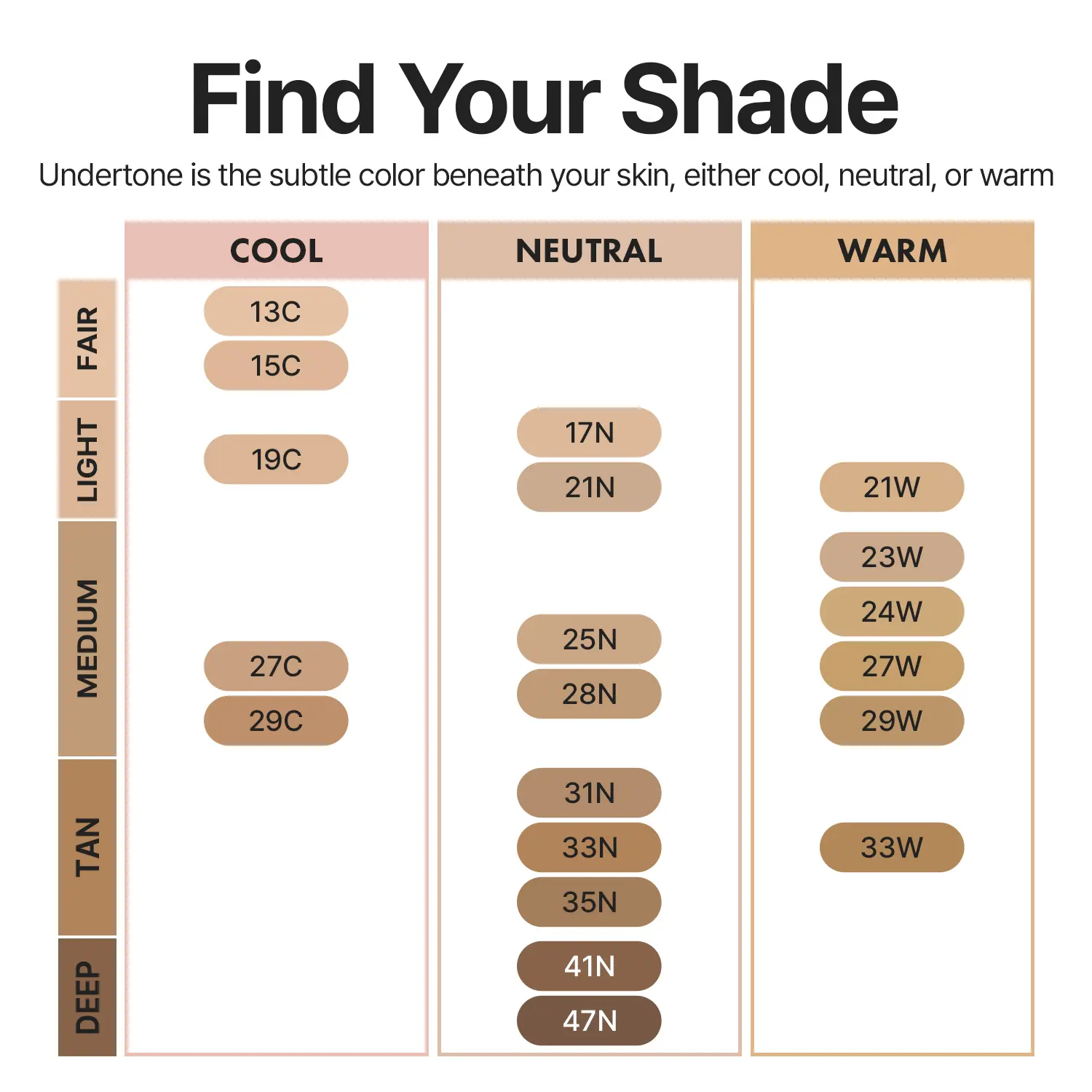 Protect your skin with SPF 50+ foundation. It offers lightweight coverage for pores, blemishes, and imperfections. The formula ensures a natural look without being too thick. Ideal for daily use, it shields your skin from sun damage while maintaining a flawless finish.