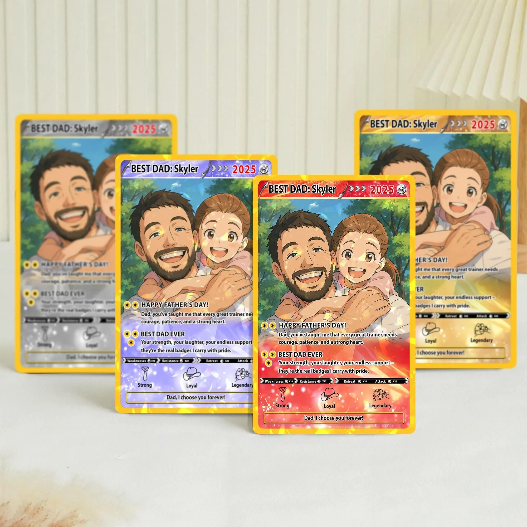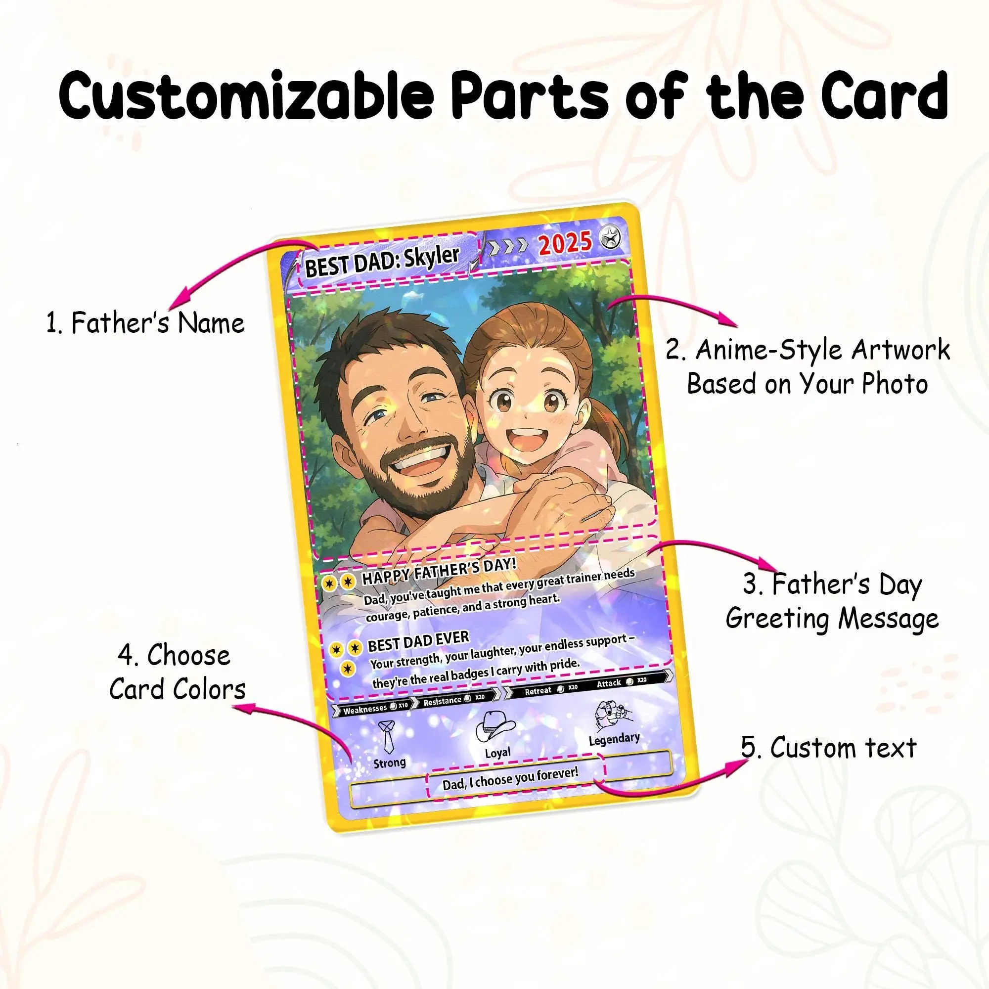 Father's Day Gift For Dad, Custom Poke Anime Dad Card, Personalized Photo Anime Card, Gamer Dad Gifts From Kids, Gift For Husband, Art Card