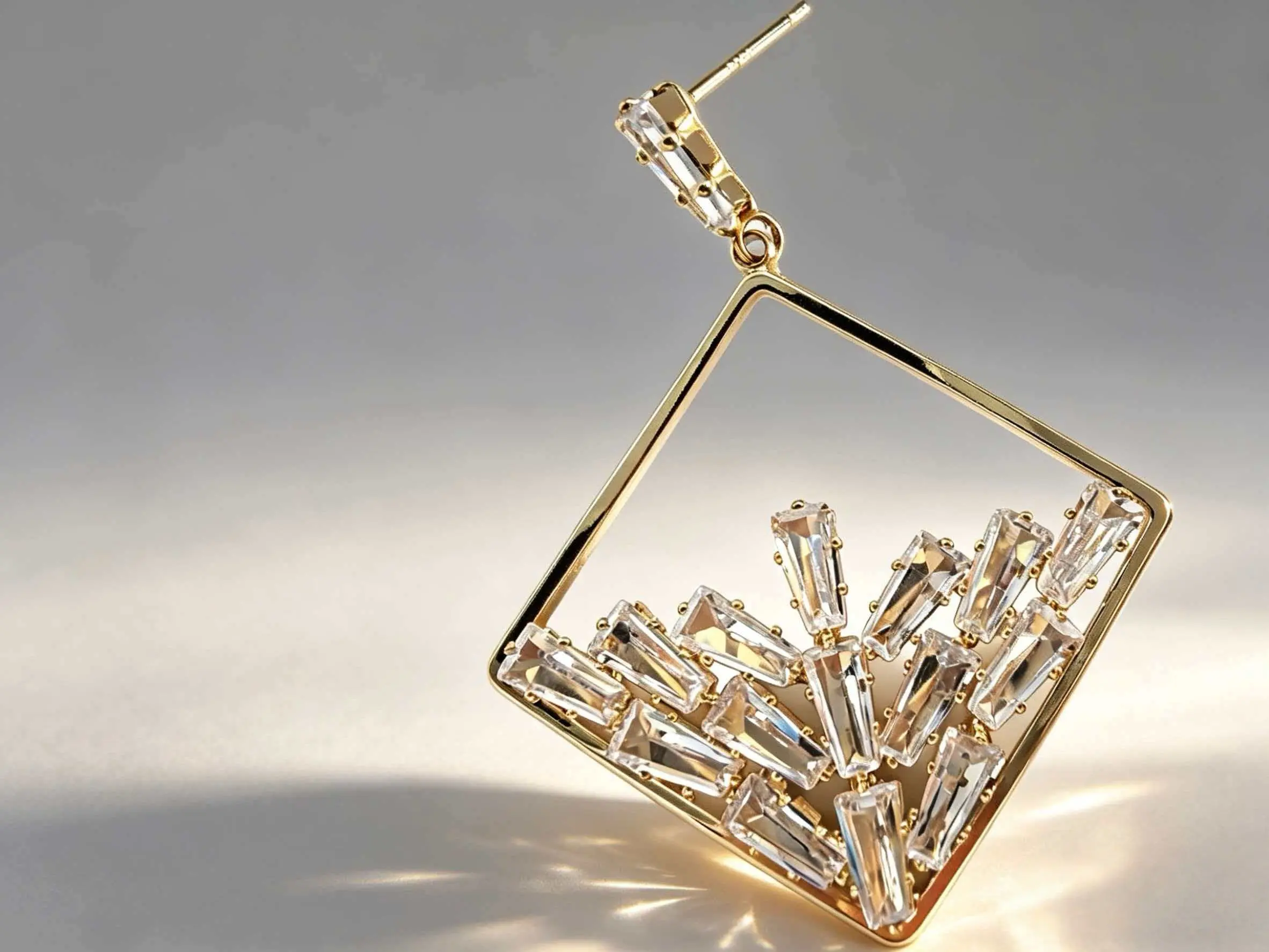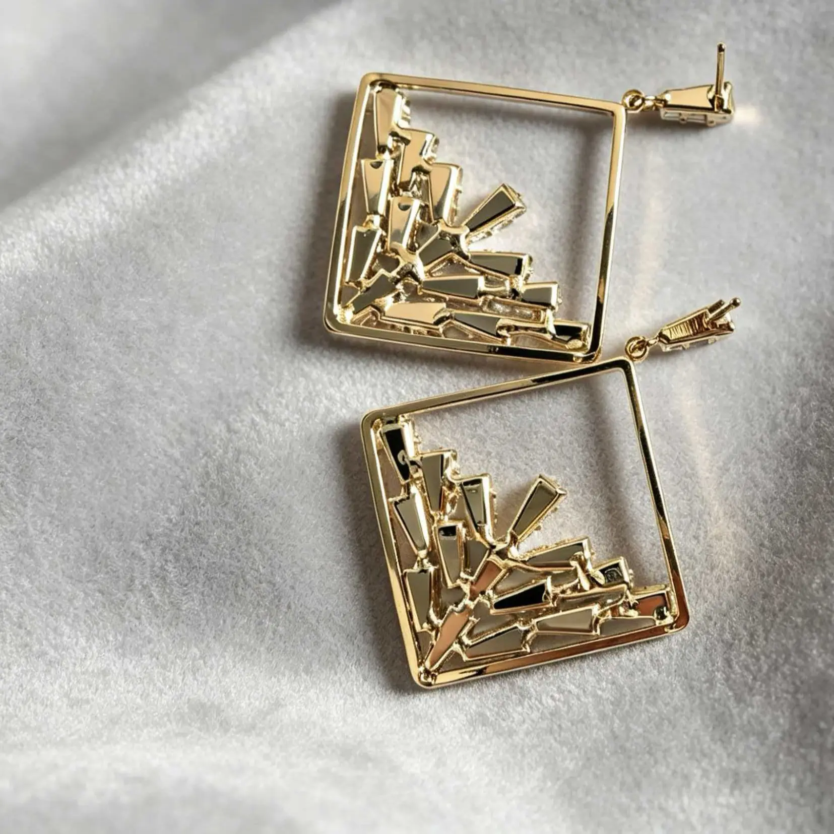 Unique Design: Geometric square hollow frame with a cluster of sparkling baguette-cut stones for a modern, eye-catching look.