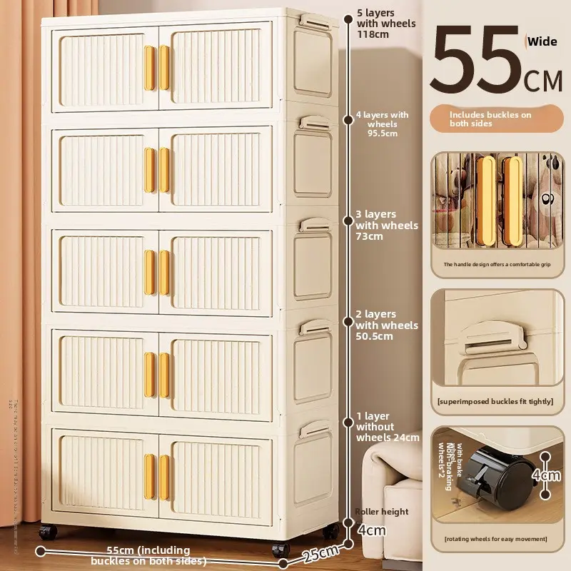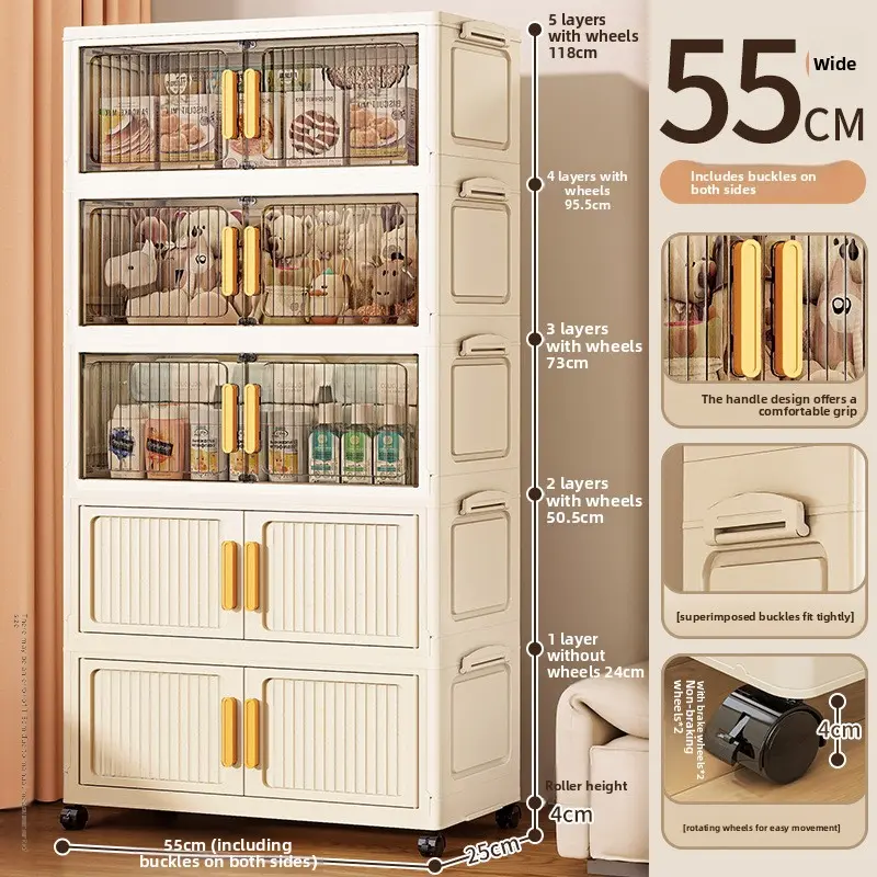 21.65 inches Multi-layer Foldable Storage Box with Double Doors, Large Capacity Home Organizer Bin for Clothing, Toys, Snacks & Household Sundries