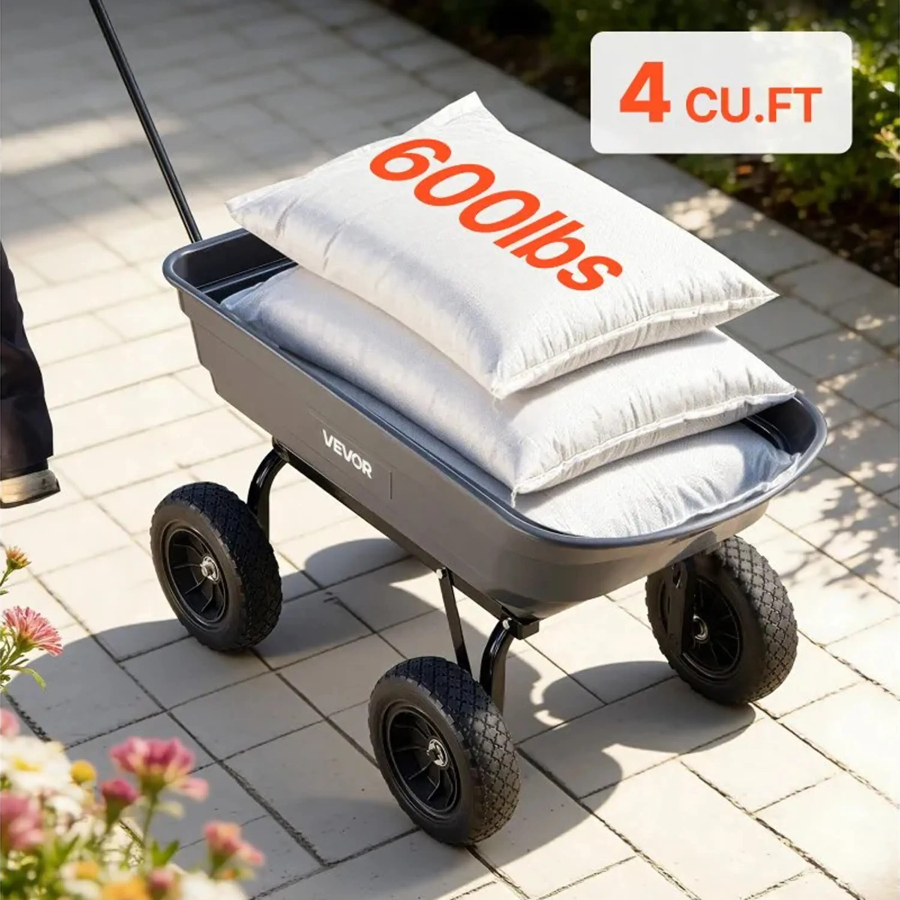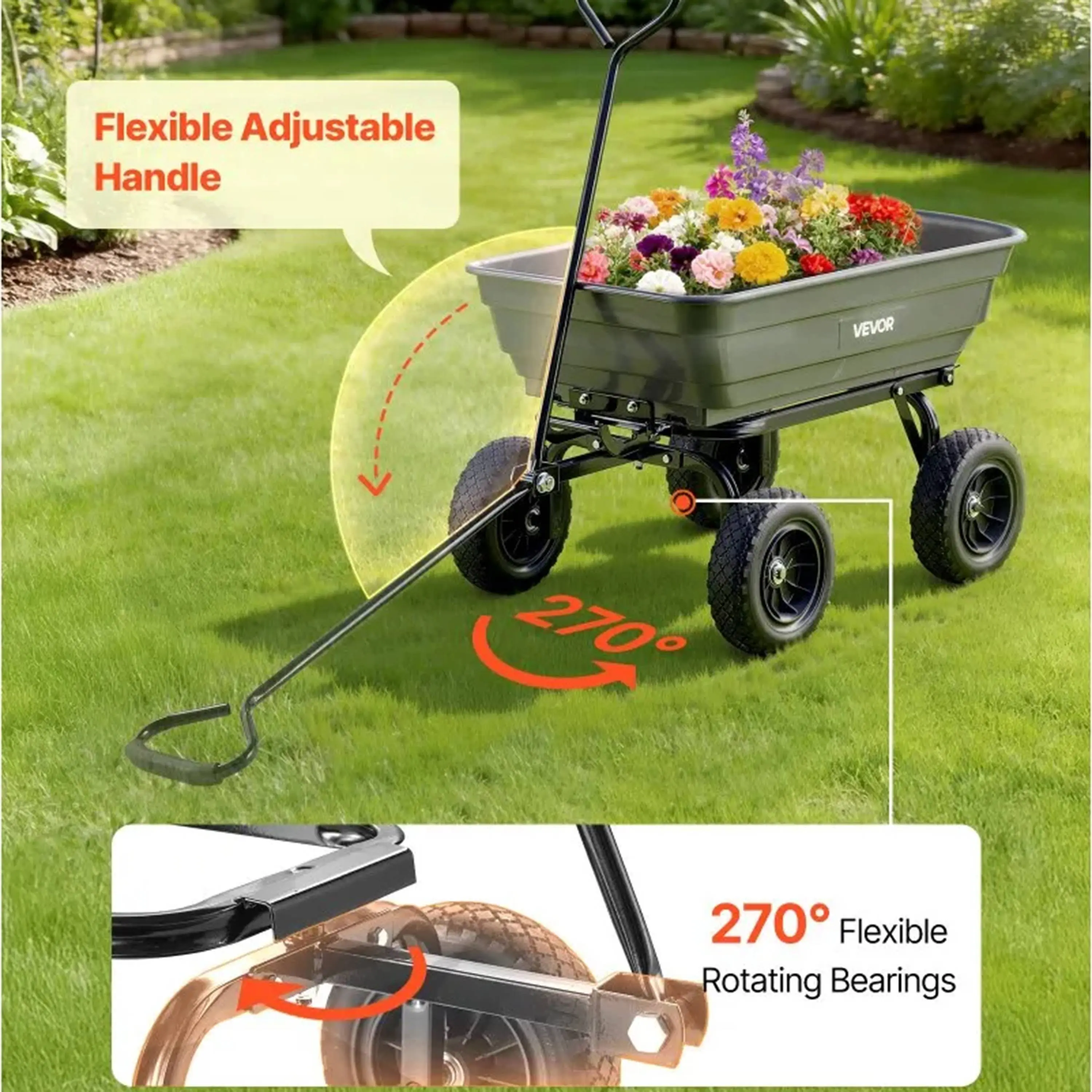 ·Smooth Turning Support: With a 90° rotating handle and 180° wheels, this garden dump cart wagon stays easy to guide when filled, letting you turn, back out, or shift through narrow paths with less strain