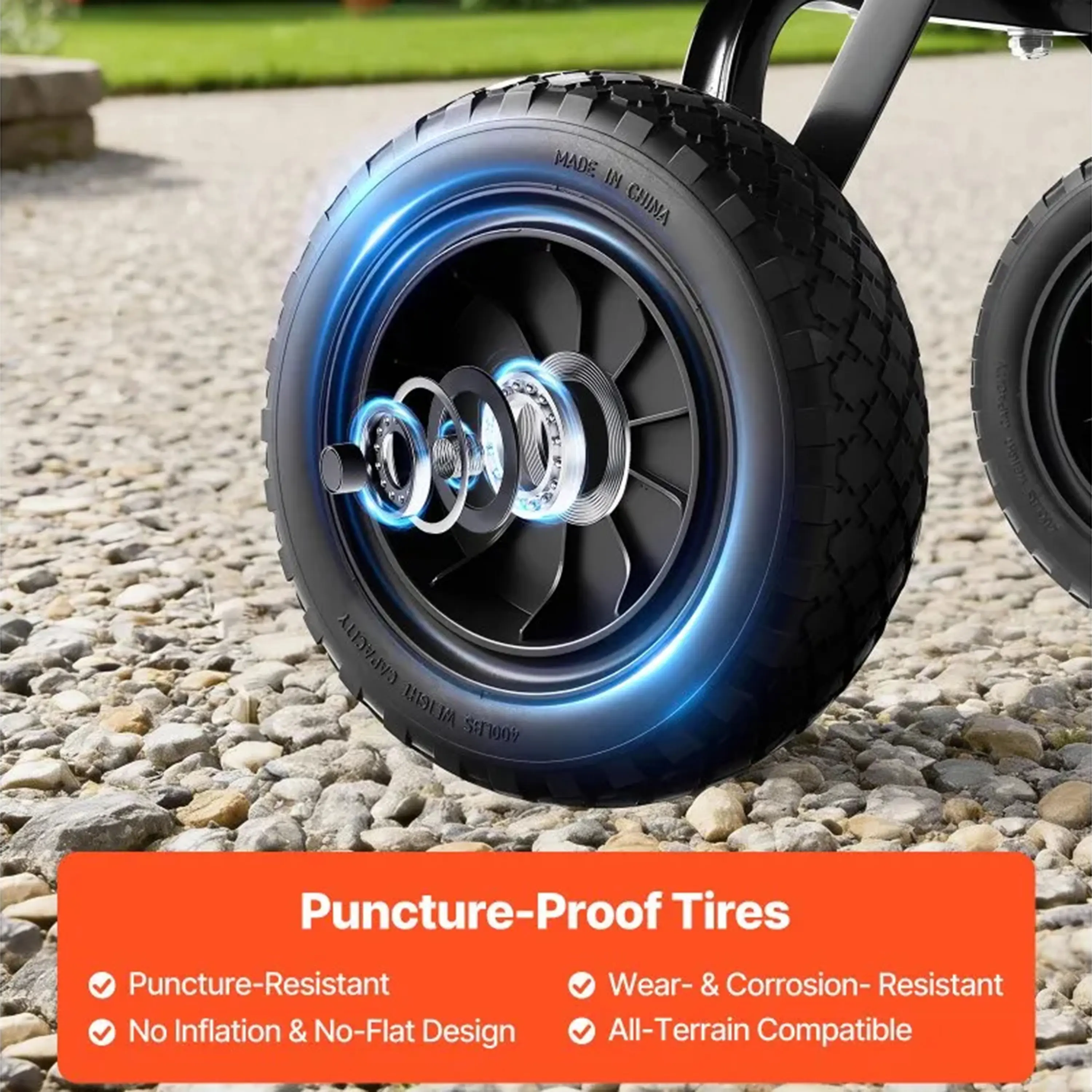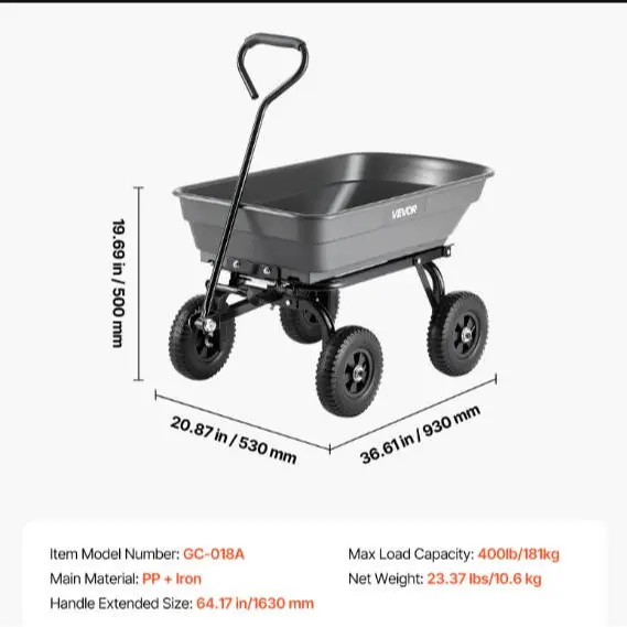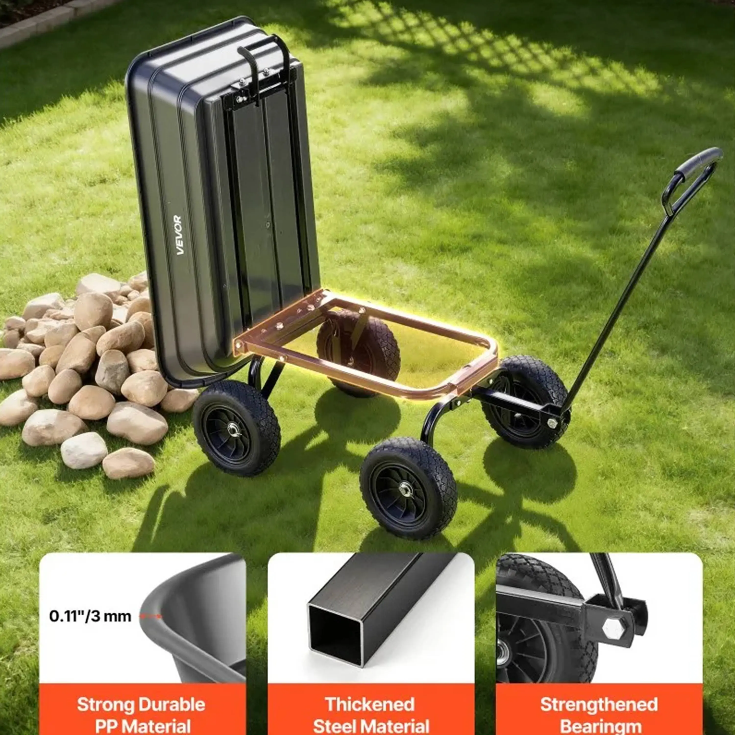 ·Light Tray Handling: Built with a PP tray, this VEVOR gardening wagon stays light and manageable, offering smoother control than metal options and steady outdoor durability. Dirt, grass, and fertilizer wash off with a quick rinse, reducing effort and making routine care more relaxed