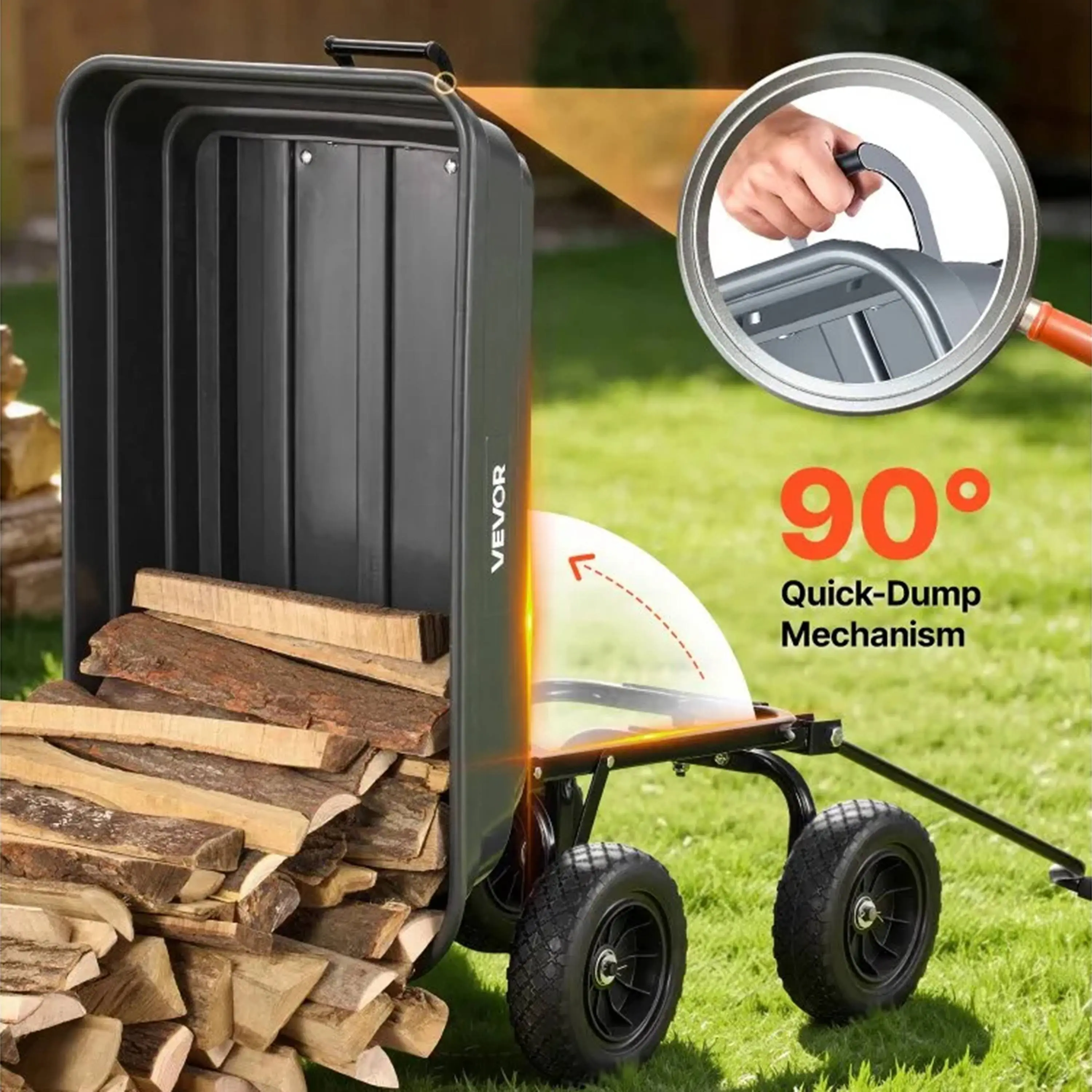 ·Quick Lift Dump: Built with a quick-tilt design, our lawn cart drops material the moment you lift the tray, allowing wet soil, leaves, and debris to glide out easily. It reduces effort across yard or farm work so you can move through tasks with steady, efficient flow