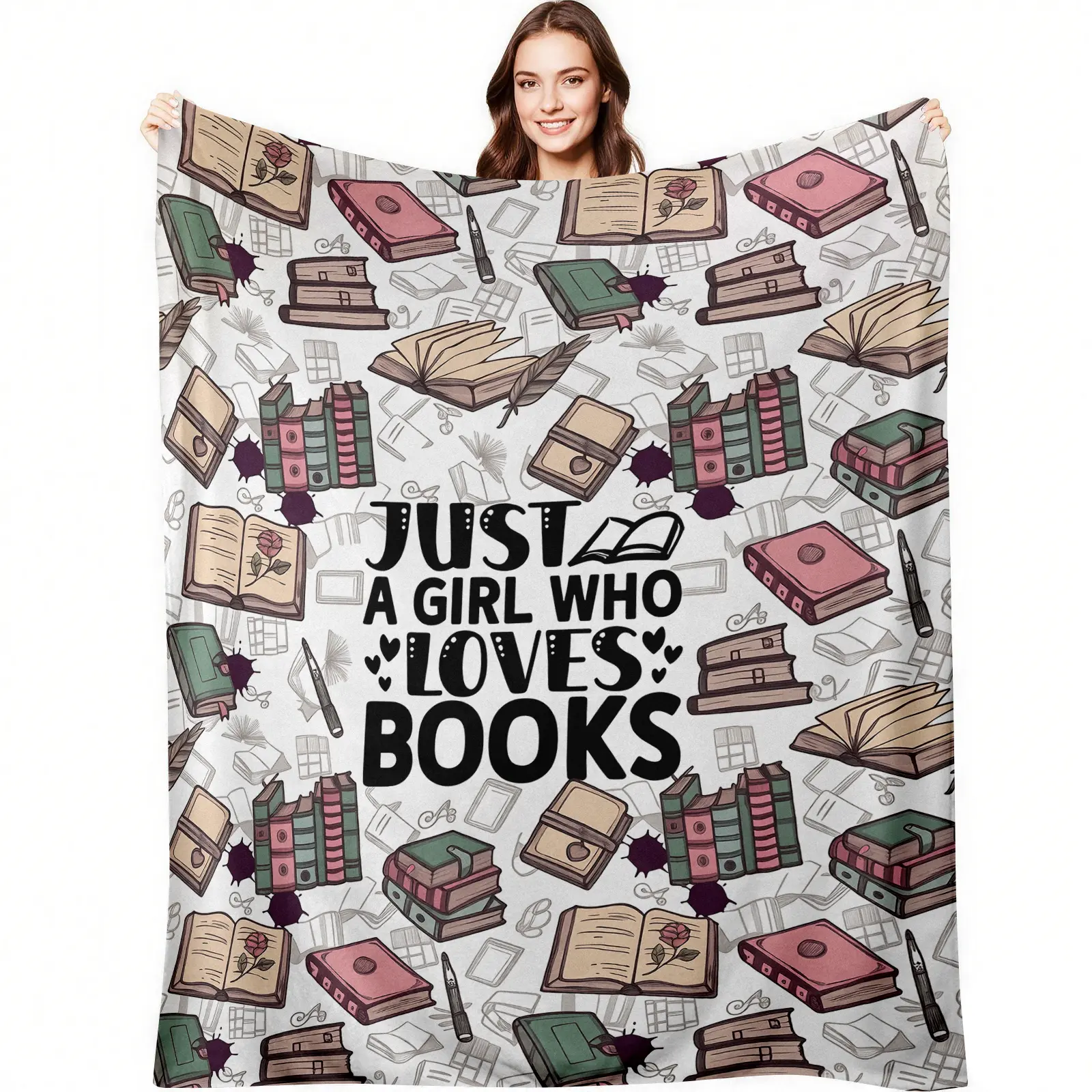 Flannel Blanket - a Warm Choice for Every Book-Loving Girl, Celebrating The Dreams of Readers. The Gentle And Stylish Patterns Add Color to The Reading Experience