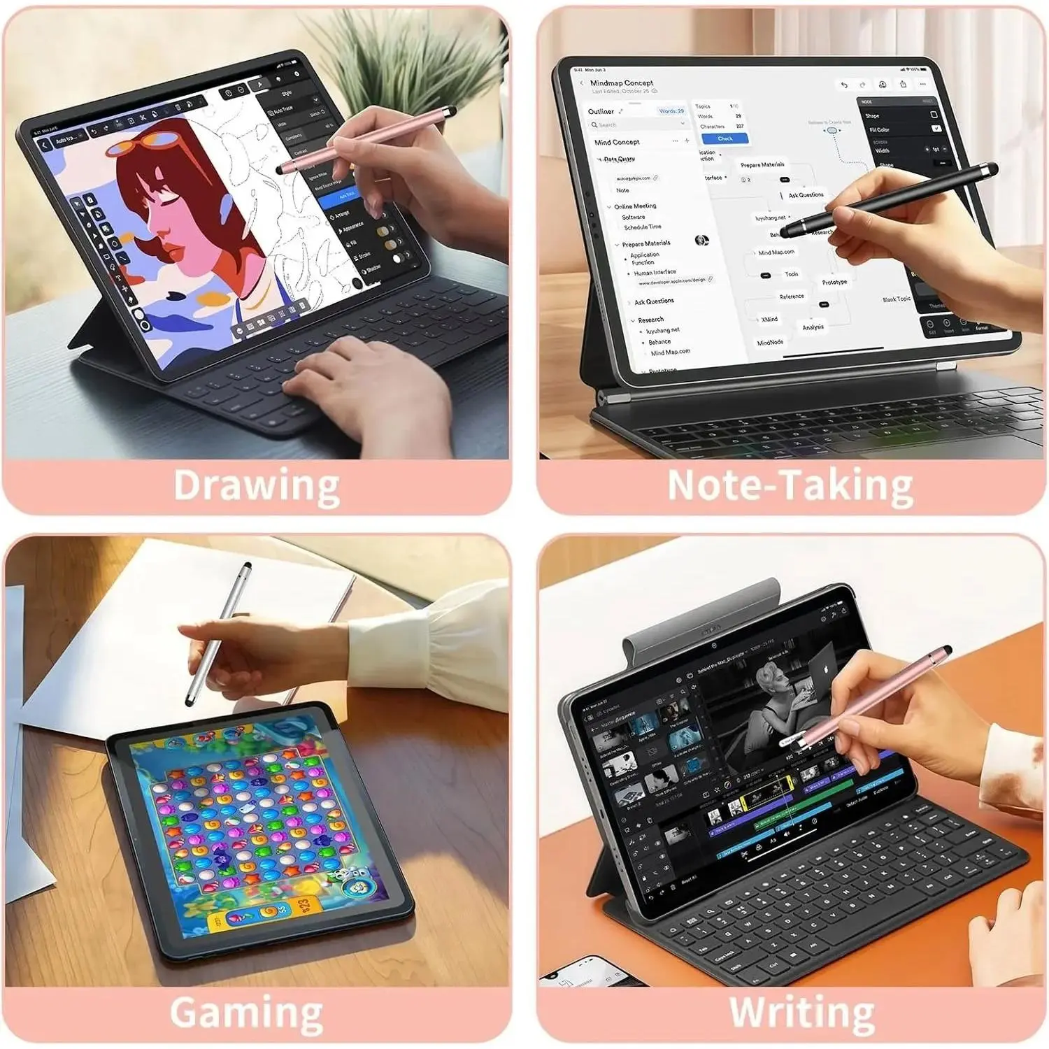 ·【2 in 1 Stylus Pen】Stylus pen for touchscreen features 2 different tip sizes (0.27 inches/0.2 inches). Its dual-tip soft rubber nib ensures smooth, lag-free writing, scrolling, clicking, and drawing to meet diverse needs.