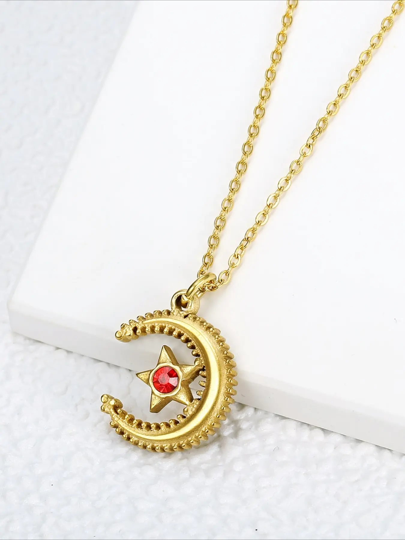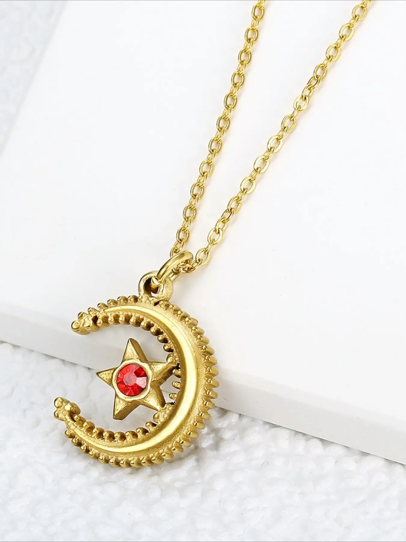 Vintage Relief Star Moon Inlaid Zircon Pendant Necklace Made of Stainless Steel Material, Mysterious and High-end Accessory