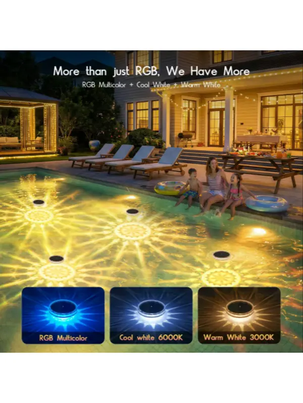 ·【Dynamic RGB Floating Lights】: Solar Pool Lights with 3 Dynamic RGB Lighting Modes + 9 Static Lighting Modes, Floating Pool Lights are the preferred choice for swimming pools, spas, hot tubs or gardens with Dynamic RGB Lighting Effects. Whether it's Christmas, Valentine's Day, weddings or a romantic evening. They add fun and romance, turning any occasion into something special.