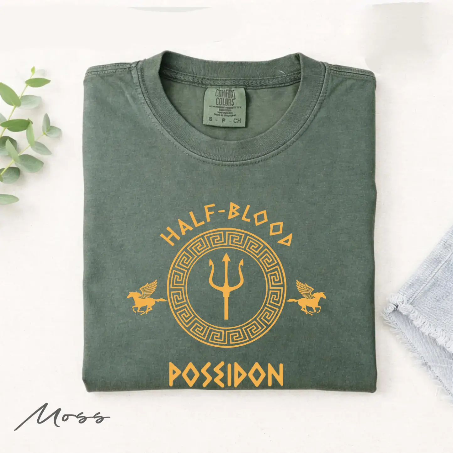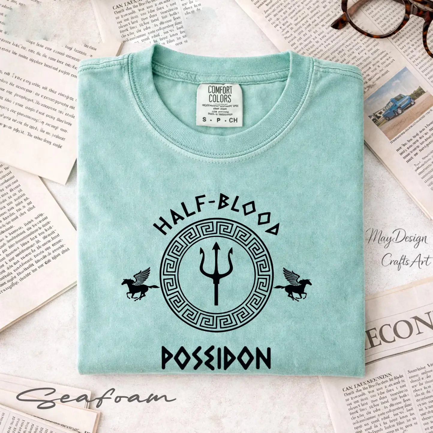 Half Blood Poseidon Comfort Colors T-shirt, Mythology Lover Tee, Percy Jackson Olympus Gods Fan, Homer Bookish Gift For Friends
