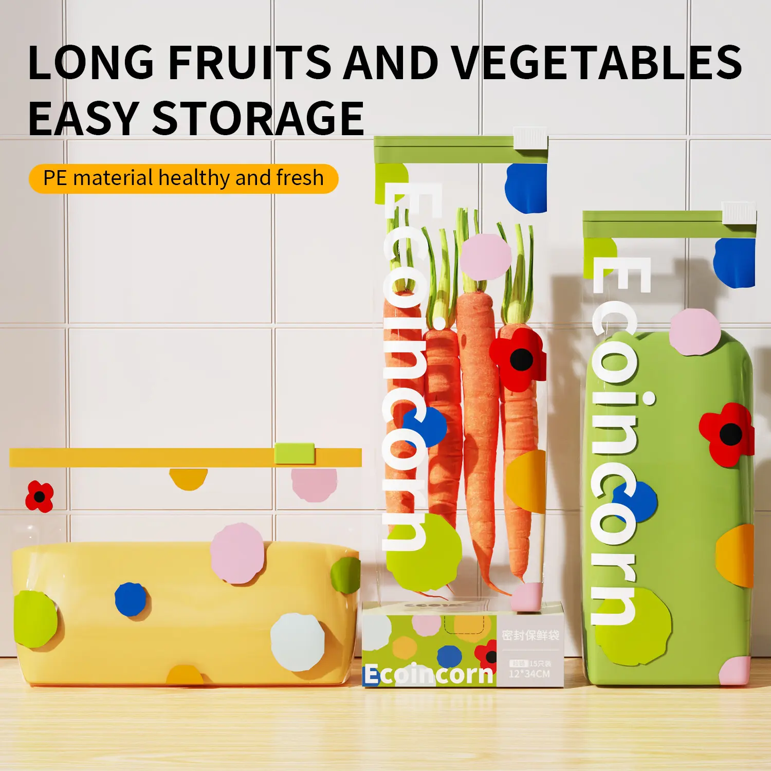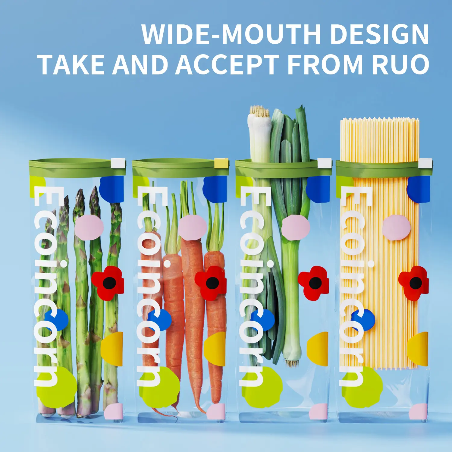 Sealed food storage bag, vertical bottom, easy to fill sandwich and snack bags, storage freezer bag with grip sealing technology, convenient to open and close 65 tubes
