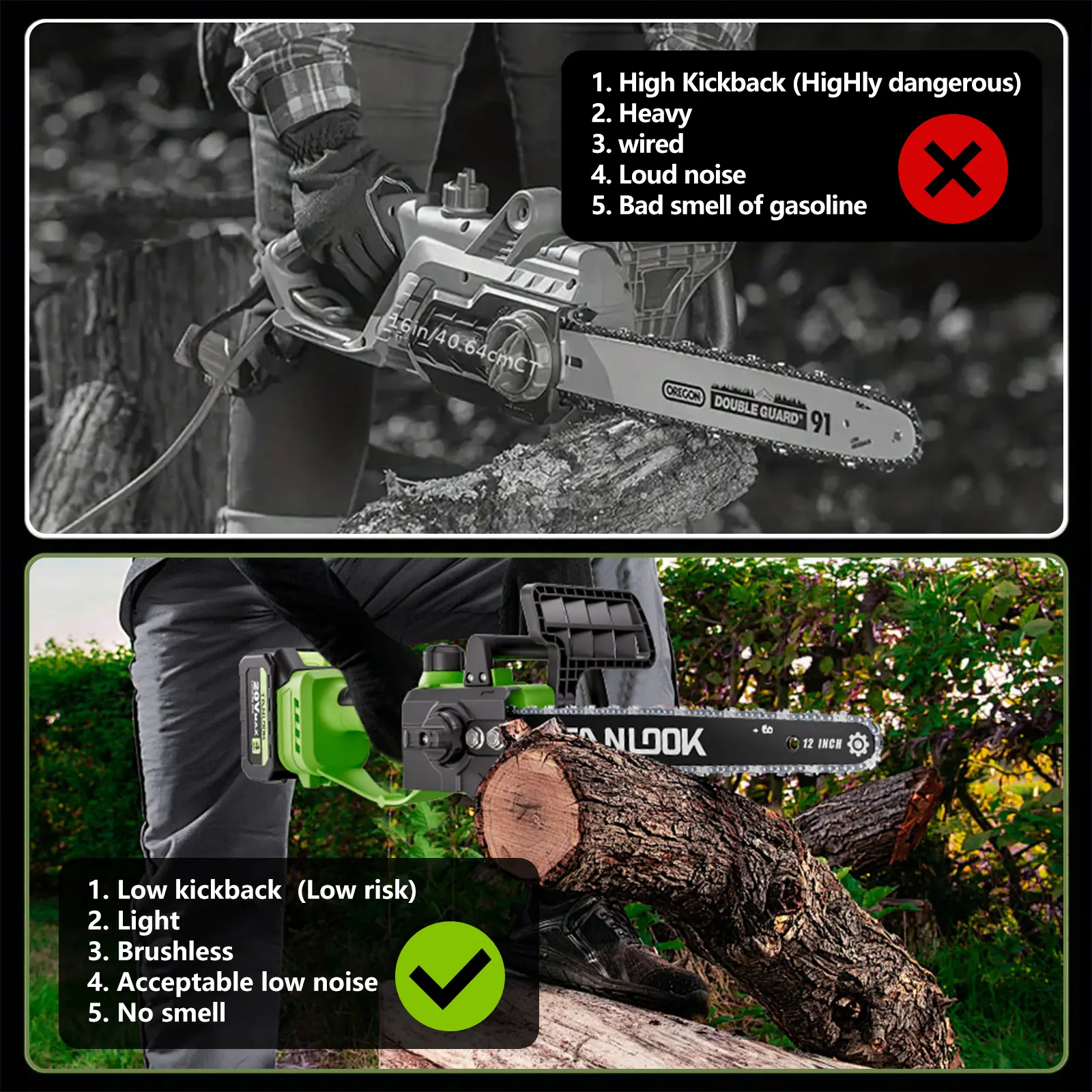 Outdoor Cordless Chain saw 12" Wide Guide Rail–Compact handheld electric chainsaw,equipped,2×4Ah batteries,highly efficient for wood cutting,tree trimming and pruning–ideal for woodworkers and DIY enthusiasts garden gadgets yard tool gardening work MJ3
