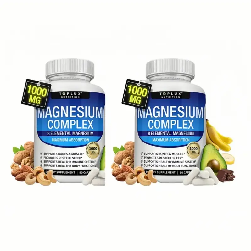 (Flash Sale 3 bottles) TopLux Nutrition Magnesium Complex 1000mg 90 Capsules 7 Elemental Sources Men Women Bone Muscle Sleep Immune Support Nature Decent Fitness Dietary Supplement Malate Taurate Chelated for