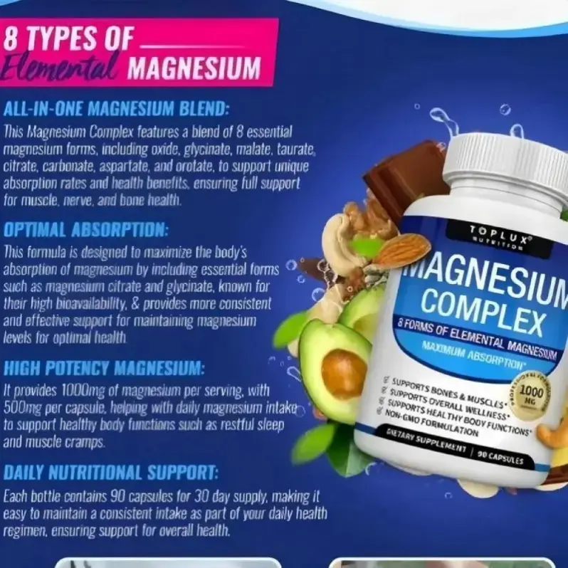 Dietary Vitamin: The Magnesium Complex contains 8 essential magnesium supplements.It is a dietary vitamin that helps in maintaining optimal health.Perfect for those looking to enhance their fitness journey.🍃