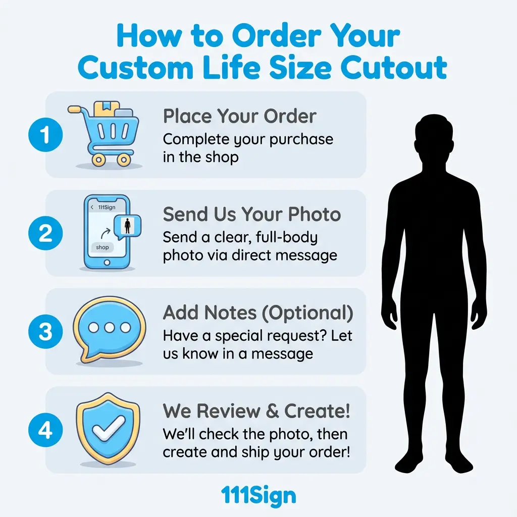 Custom Life-Size Cardboard Cutouts – Upload your photo to create personalized standees from 1–6 ft, ideal for birthdays, weddings, parties, and event décor