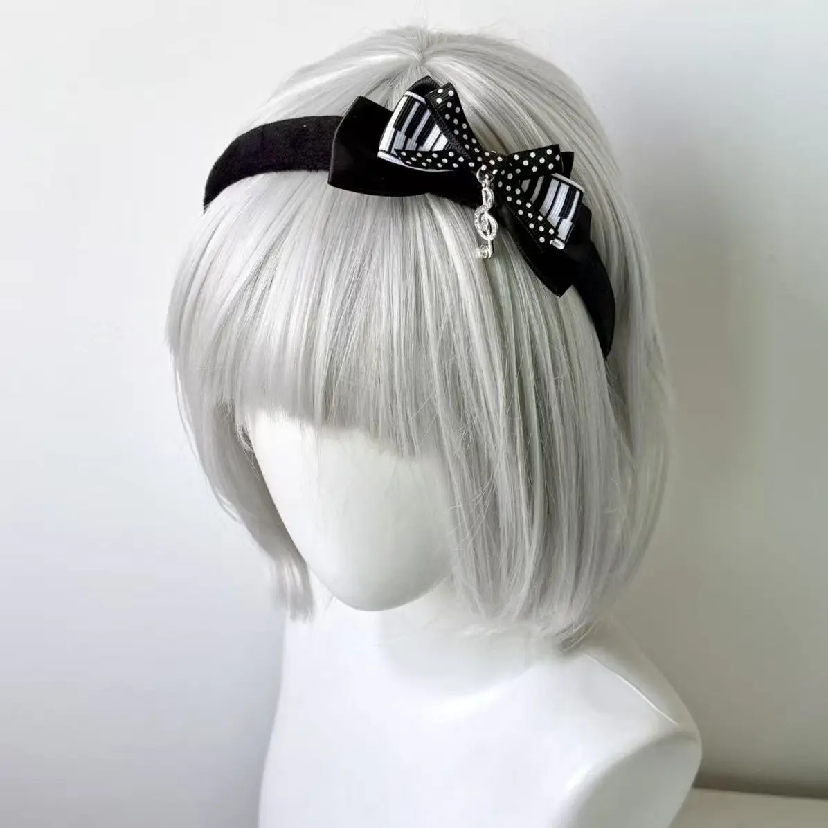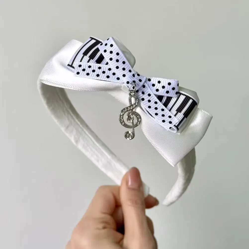 🎼 Y2K Black White Polka Dot Piano Key Bow Music Note Headband 🎼