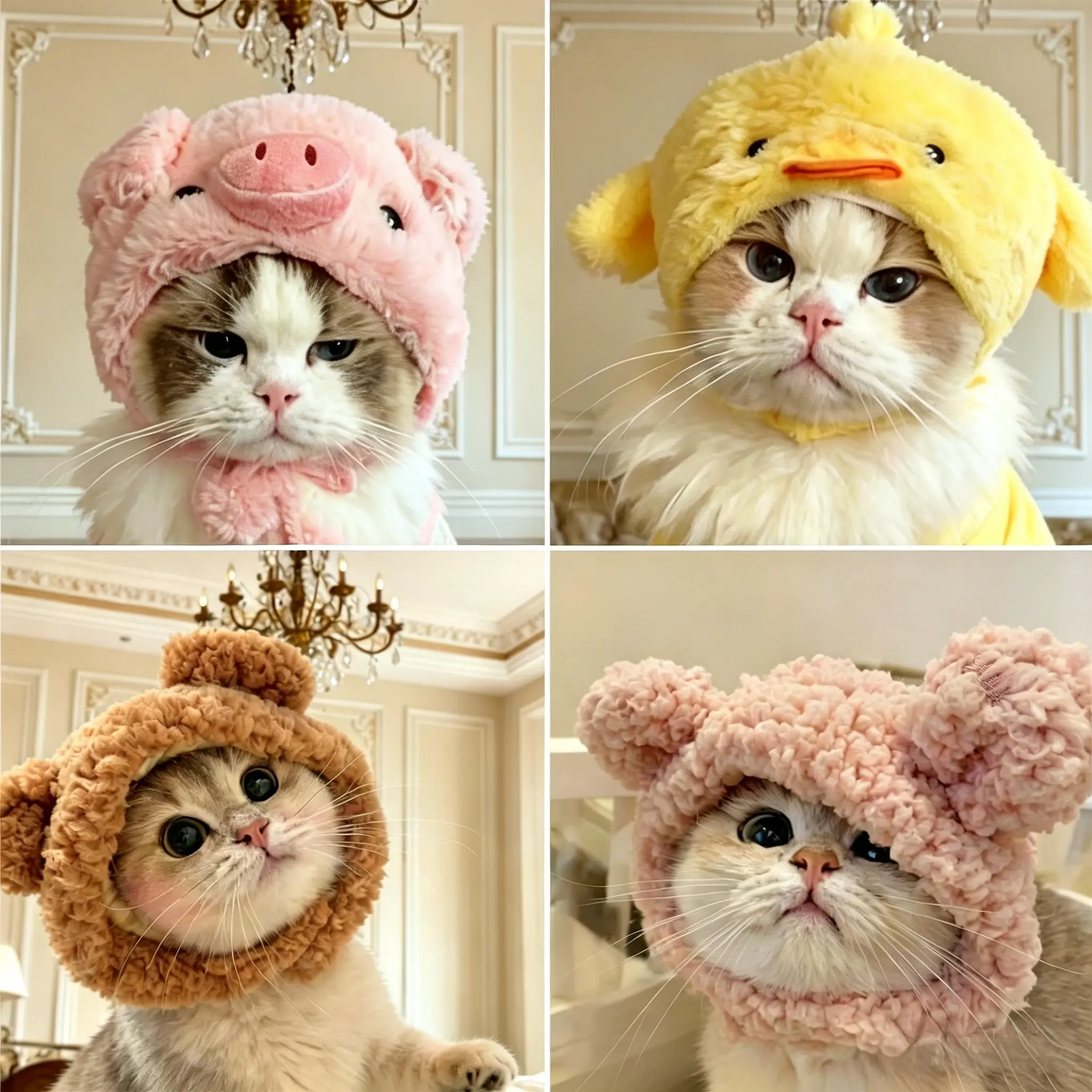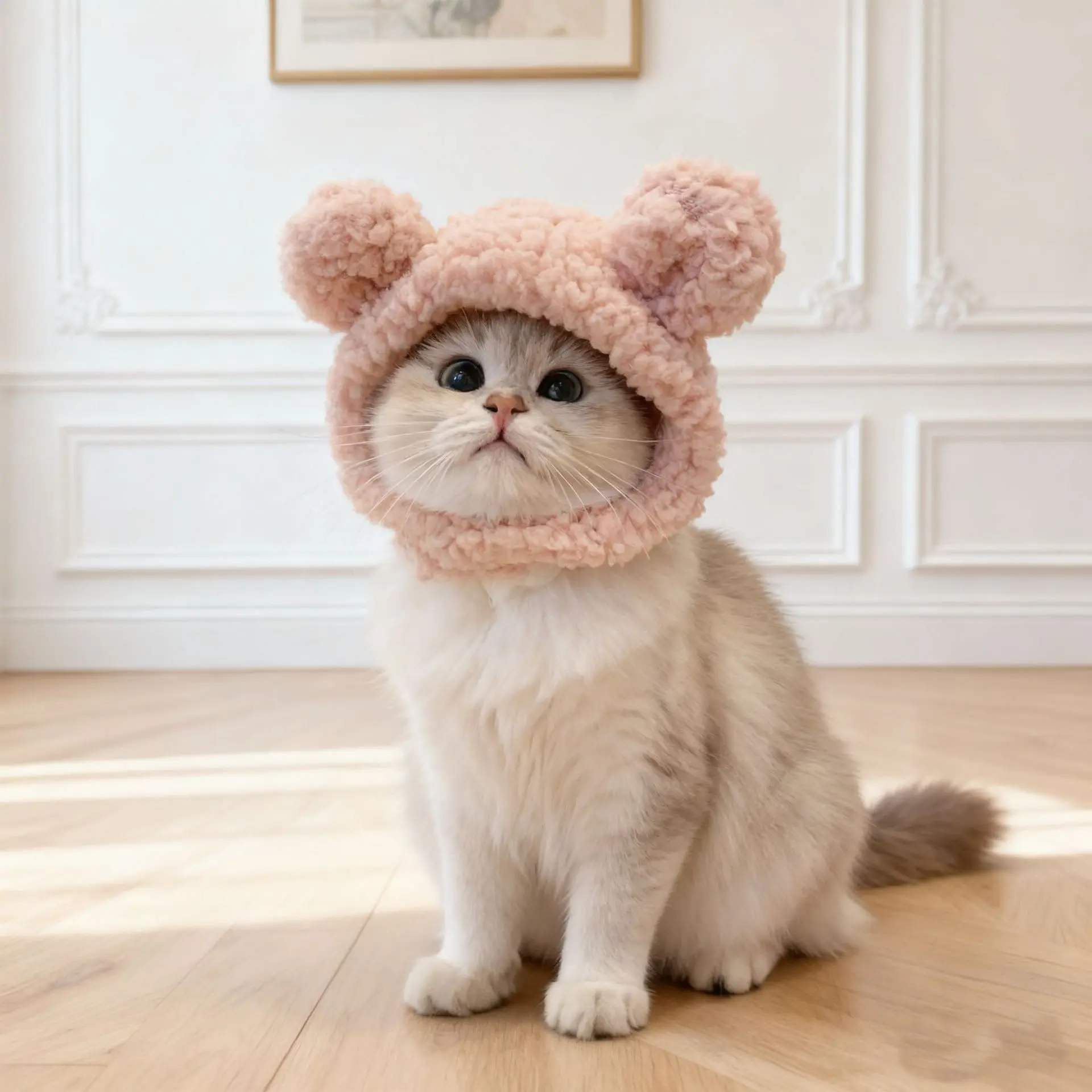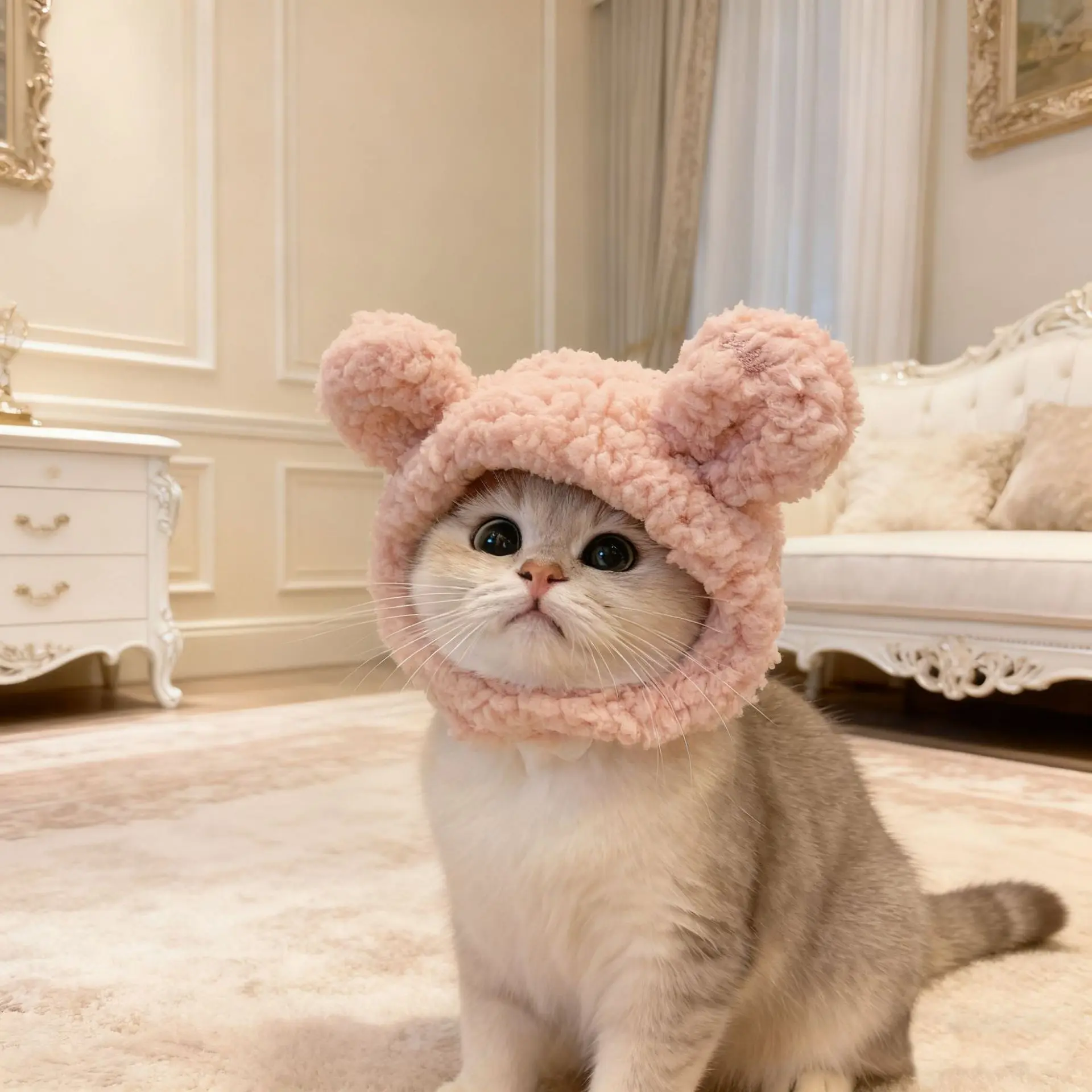 Cute Cat Costume Warm Bear Hat Adjustable Soft Small Pet Headwear for Various Cats or Small Dogs, Adorable Pet Accessory