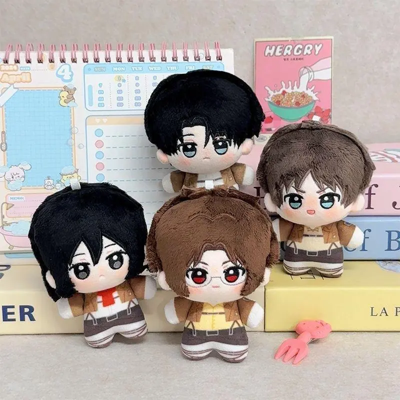 10cm Attack on Titan Eren Jaeger Stuffed Figure Keychains Accessories Kawaii Anime Mikasa Ackerman Dolls Backpack Pendant Model
