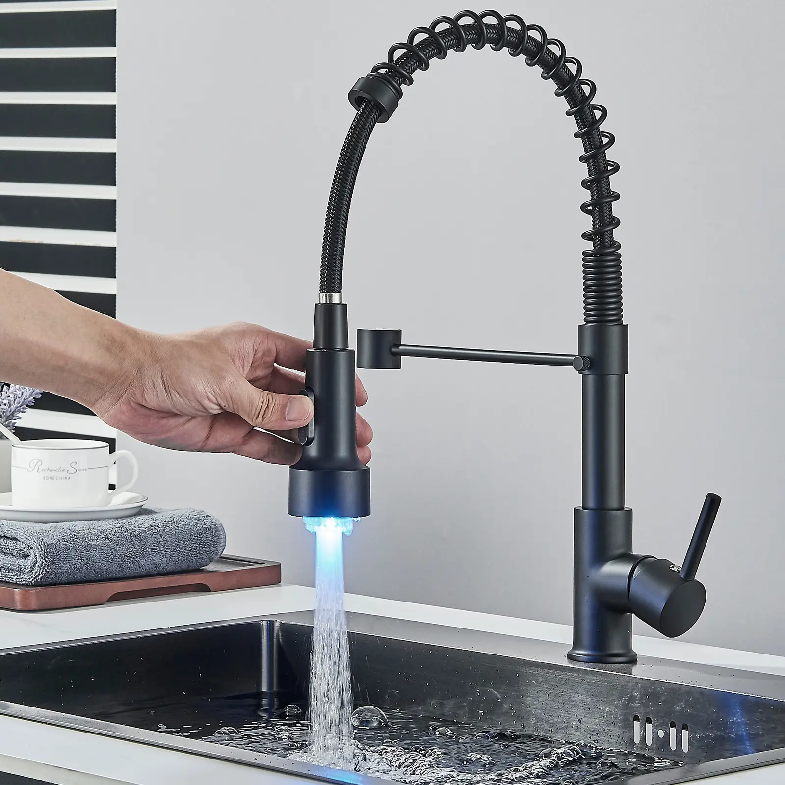 Equipped with a hydro-electric LED generator, this faucet illuminates automatically without the need for batteries or external power . The color seamlessly changes based on water temperature: Blue (0–85°F) for cold water, Green (85–105°F) for warm water, and Red (>105°F) for hot water, providing an intuitive visual guide to prevent scalding and add a stunning visual appeal to your kitchen.
