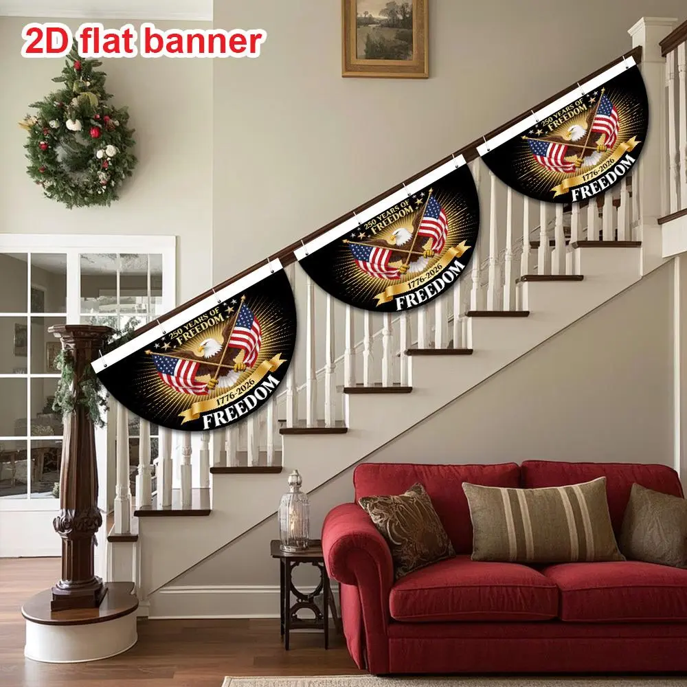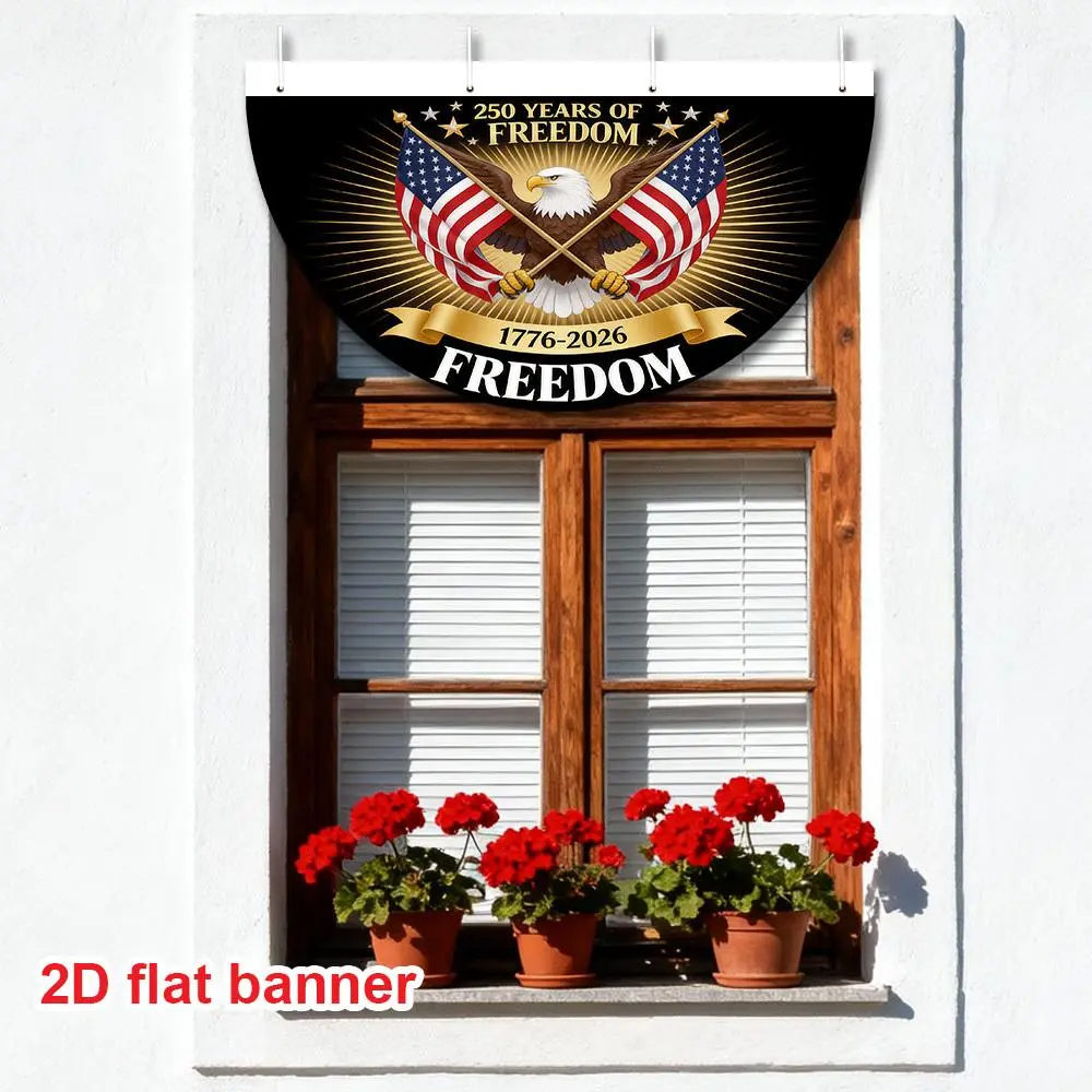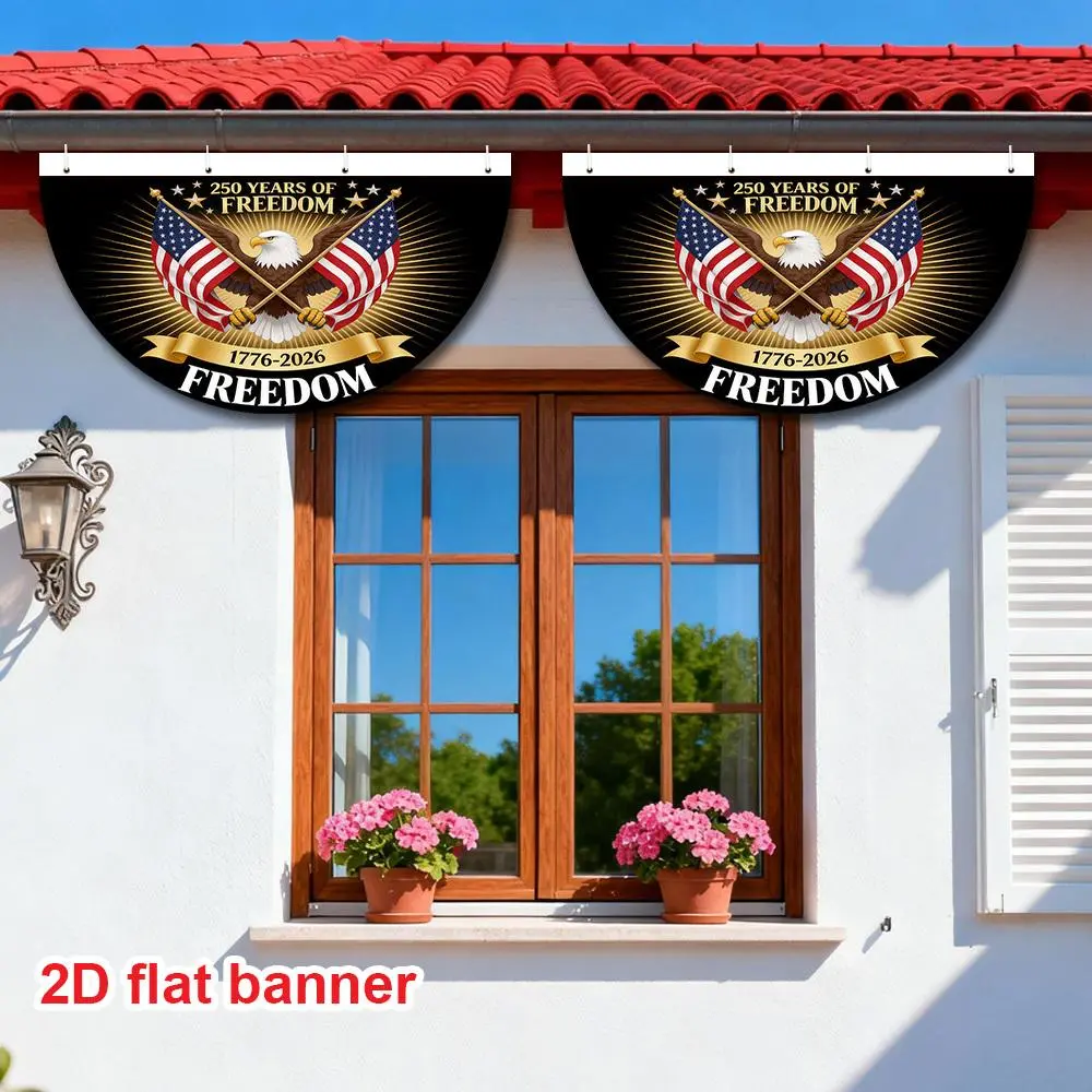 5. 1pc USA 250th Anniversary Semi-Circular Party Banner, Double-Sided Durable Polyester, Patriotic Decoration for Independence Day Celebration, Outdoor Front Door Porch Wall