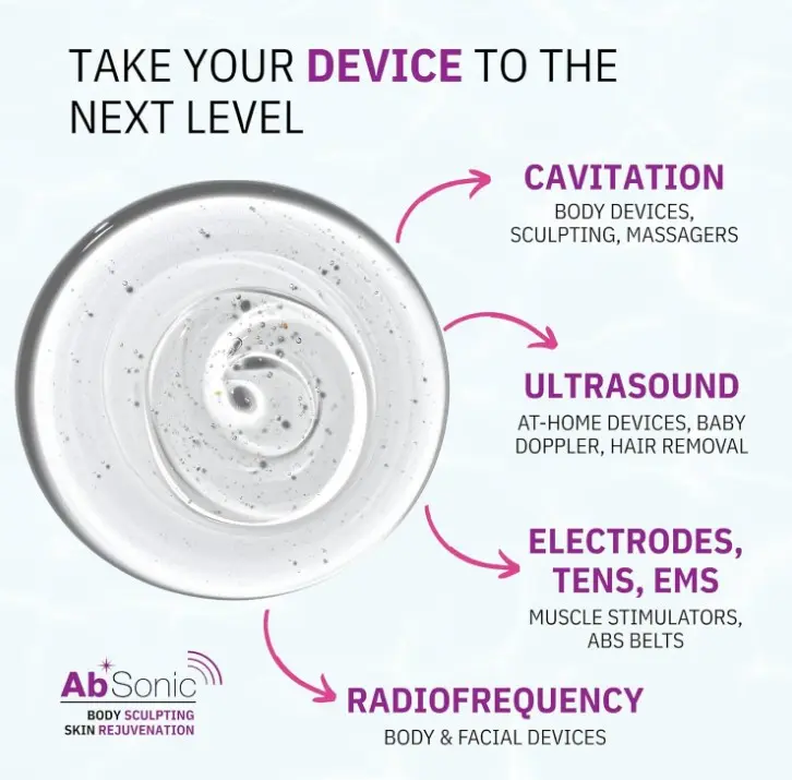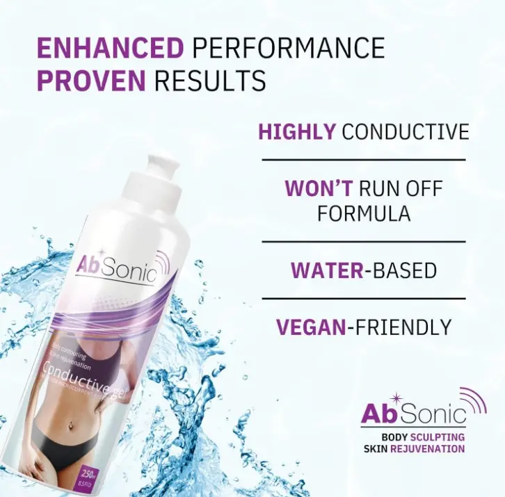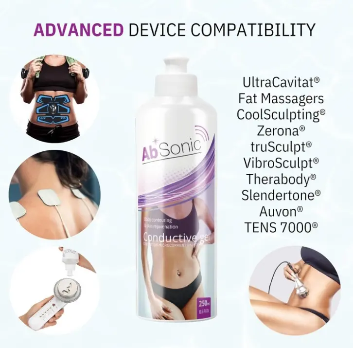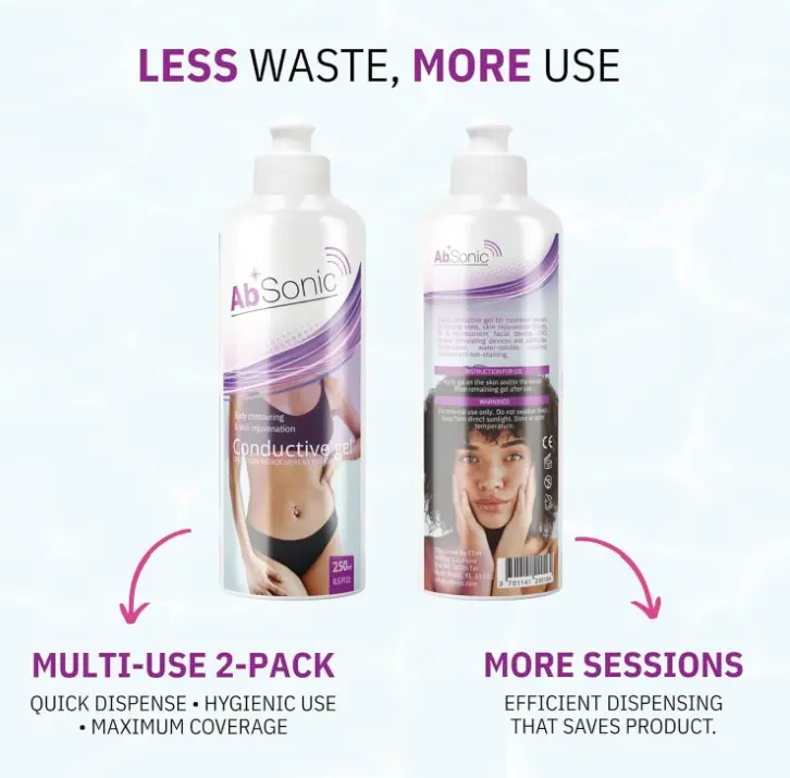 ·Hydrating Formula: Designed to maintain skin hydration throughout each session, Absonic gel aids in achieving smoother, more radiant skin without the risk of uncomfortable tingling or burning sensations often associated with cavitation, microcurrent or TENS therapy.