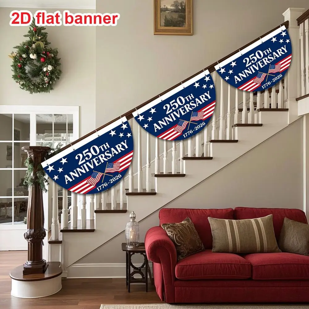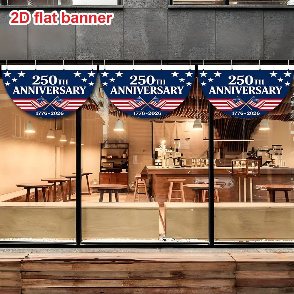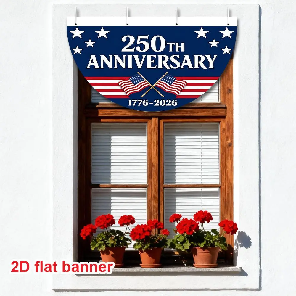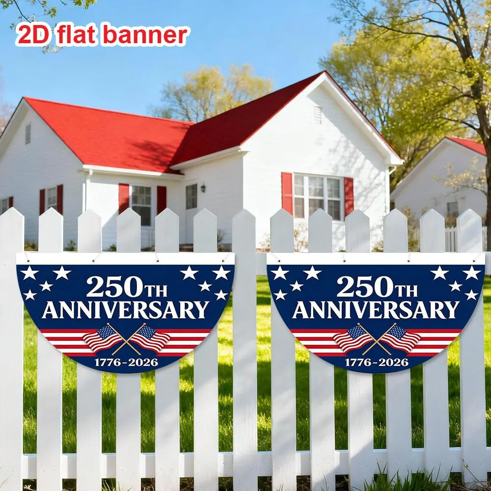 5. 1pc American 250th Anniversary Semicircular Banner, Star & Stripes Pattern Design 1776-2026, Patriotic Party Decoration for Outdoor Yard Lawn Event