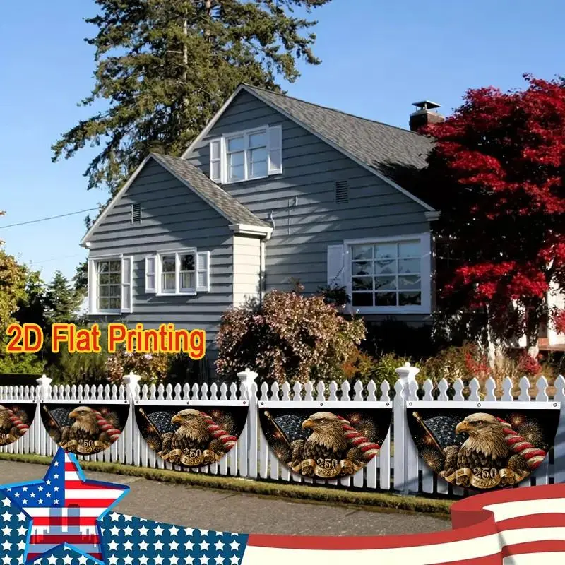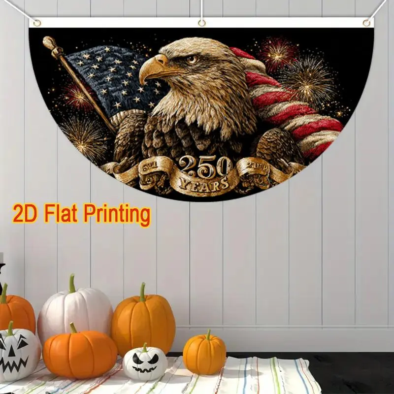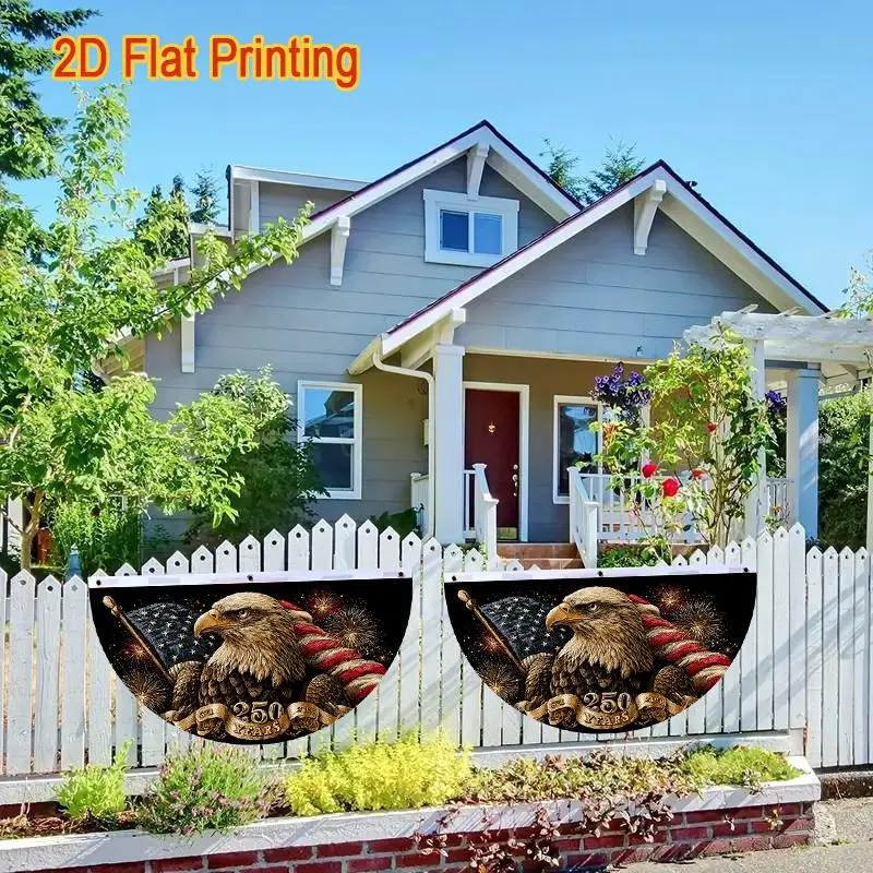 1pc 250th USA Anniversary Semi-Circular Garden Flag, Bald Eagle & Fireworks Pattern in American Flag Style, Durable 2D Flat Design for Fence Courtyard Patriotic Decor