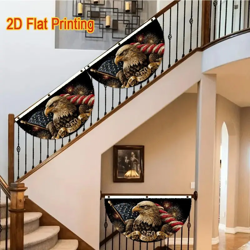 5. 1pc 250th USA Anniversary Semi-Circular Garden Flag, Bald Eagle & Fireworks Pattern in American Flag Style, Durable 2D Flat Design for Fence Courtyard Patriotic Decor