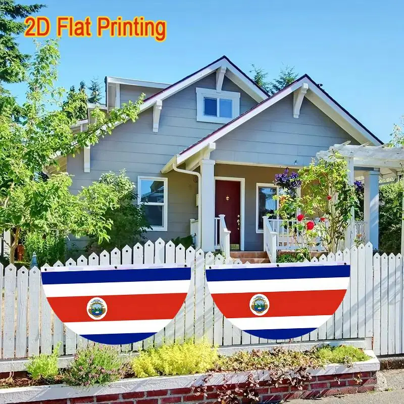 5. 1pc Costa Rica Flag Semi-Circular Garden Fence Decoration, 2D Flat Design Size 36x18 Inch (3x6 Ft), Durable Polyester for Outdoor Lawn & Wall Decor