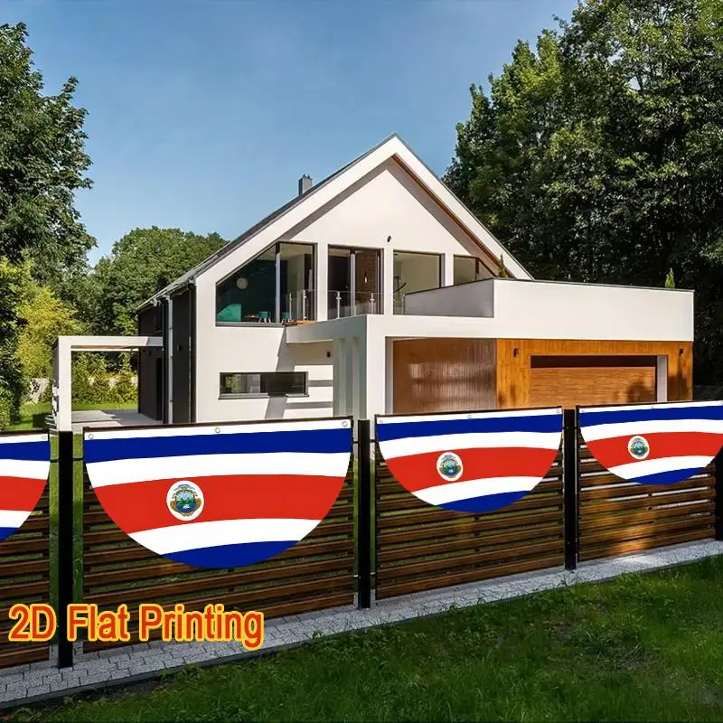 1pc Costa Rica Flag Semi-Circular Garden Fence Decoration, 2D Flat Design Size 36x18 Inch (3x6 Ft), Durable Polyester for Outdoor Lawn & Wall Decor