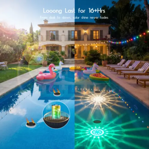 ·【Dynamic RGB Floating Lights】: Solar Pool Lights with 3 Dynamic RGB Lighting Modes + 9 Static Lighting Modes, Floating Pool Lights are the preferred choice for swimming pools, spas, hot tubs or gardens with Dynamic RGB Lighting Effects. Whether it's Christmas, Valentine's Day, weddings or a romantic evening. They add fun and romance, turning any occasion into something special.