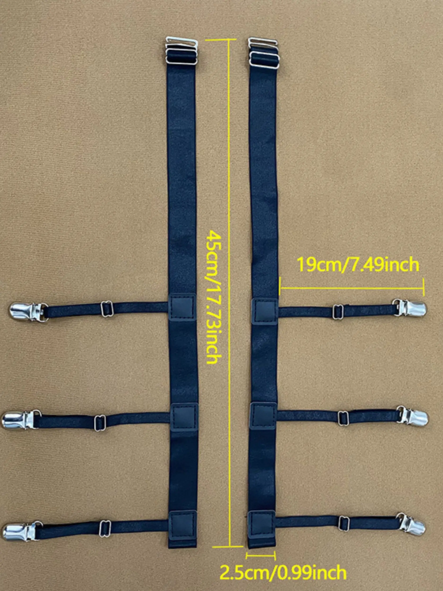 ● Material: Comfortable and skin-friendly fabric + Updated durable clips Package Including: 1 pair / 2pcs shirt stays only, well packed via retail poly bag Widely use for military, law enforcement, and other professions where a well-dressed uniform is essential. The perfect way to keep your shirt neatly tucked in and looking professional.