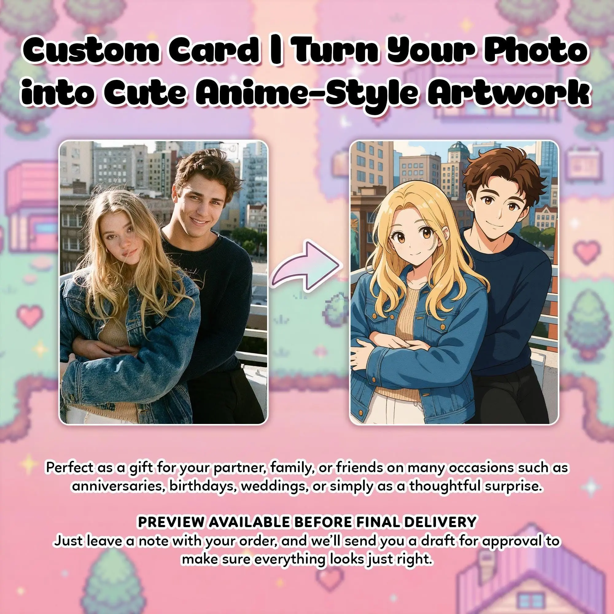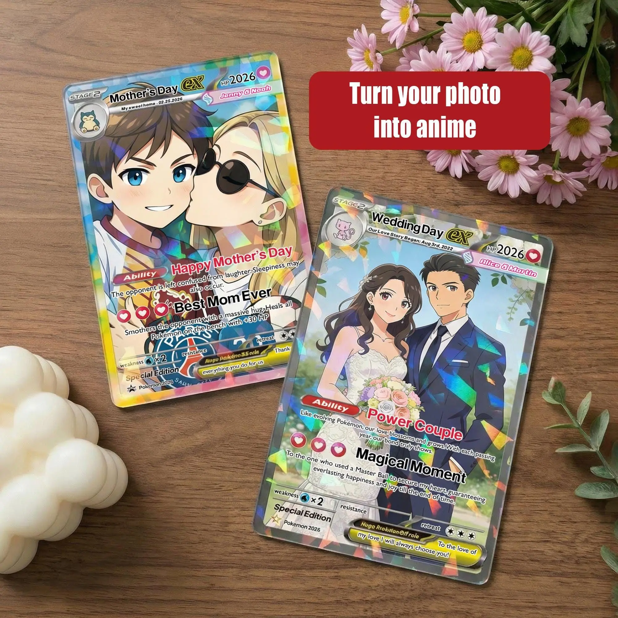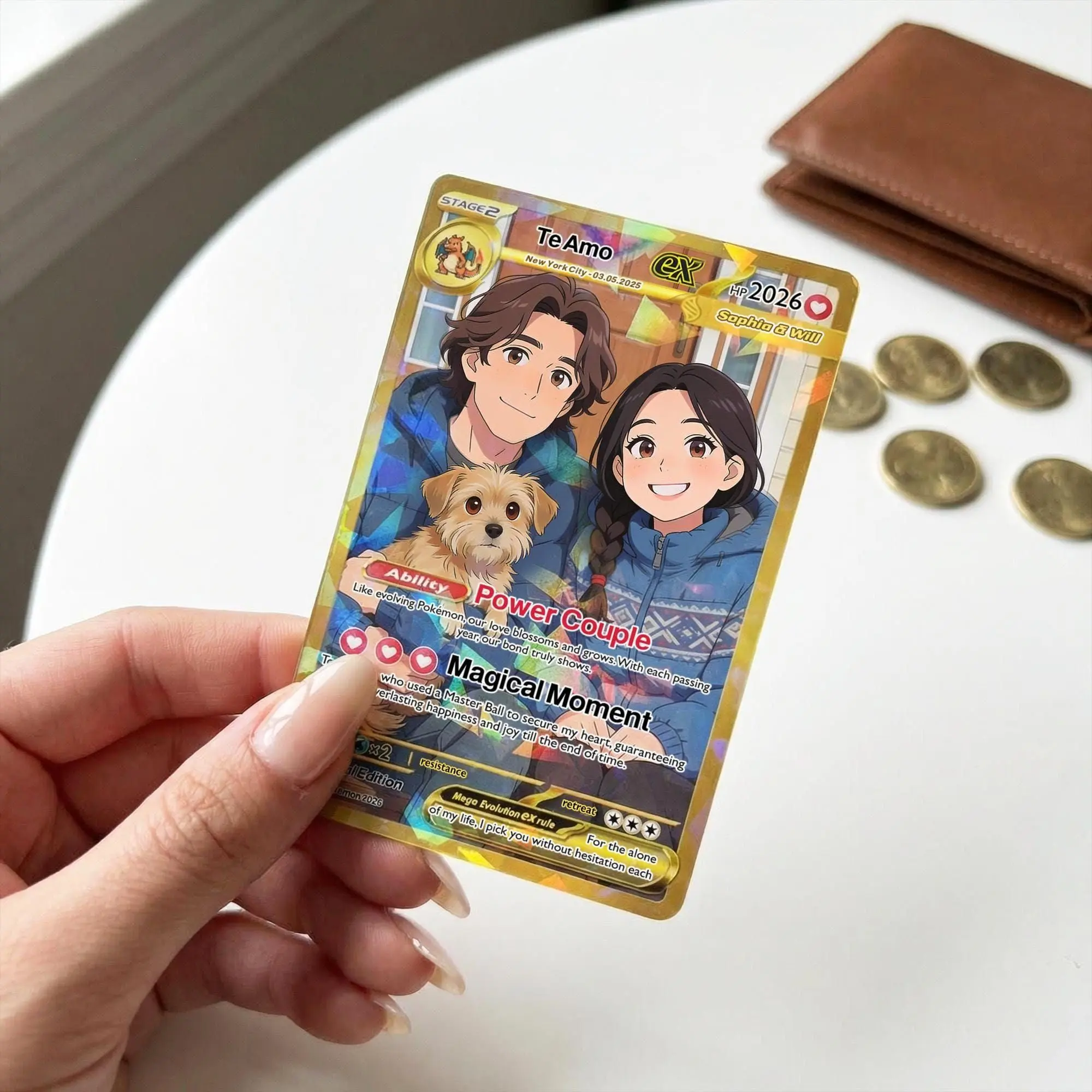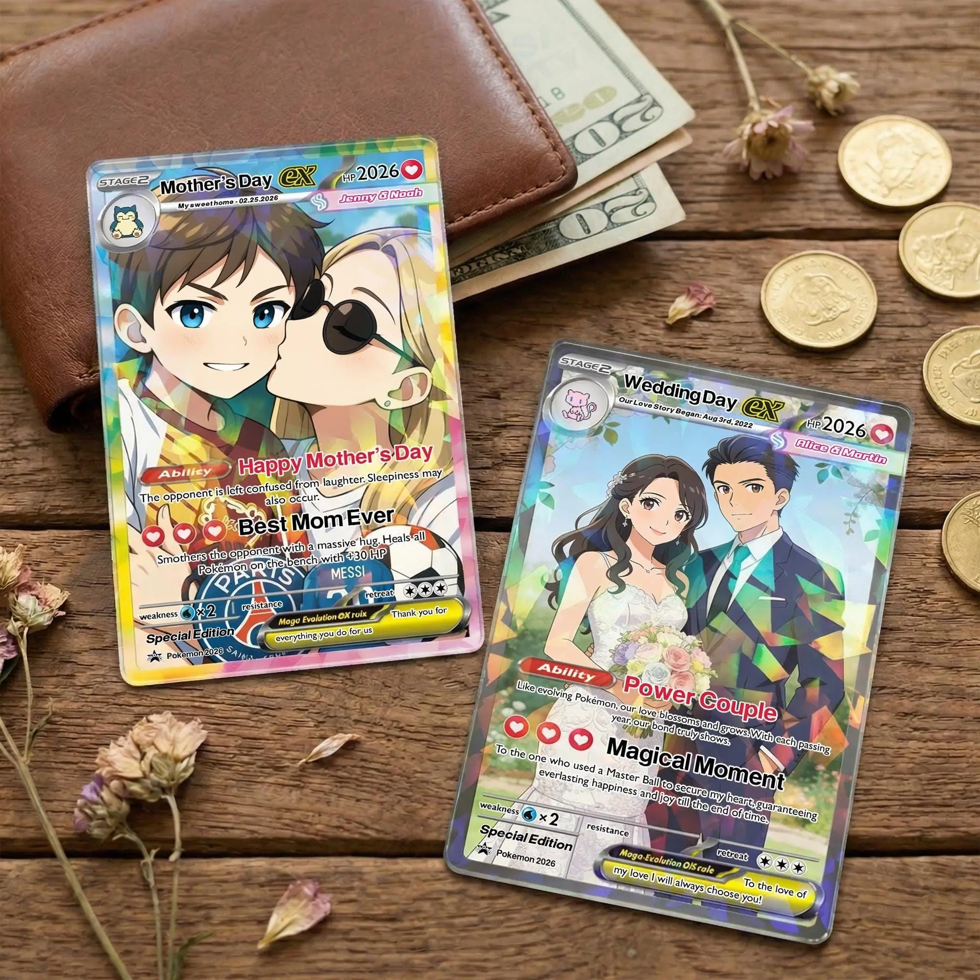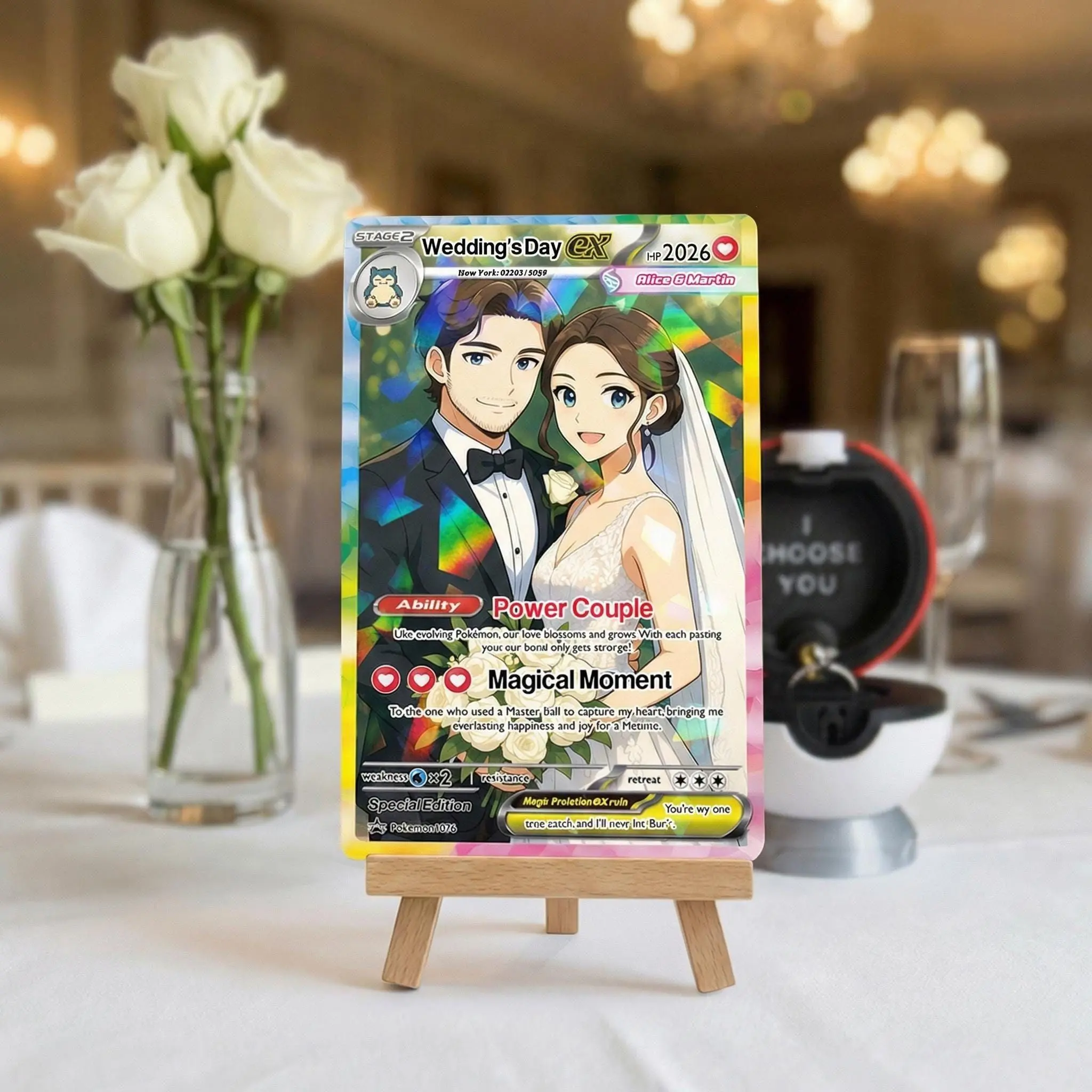 Custom Pokémon-Inspired Couple Keepsake Wedding & Anniversary Photo to Hologram Card