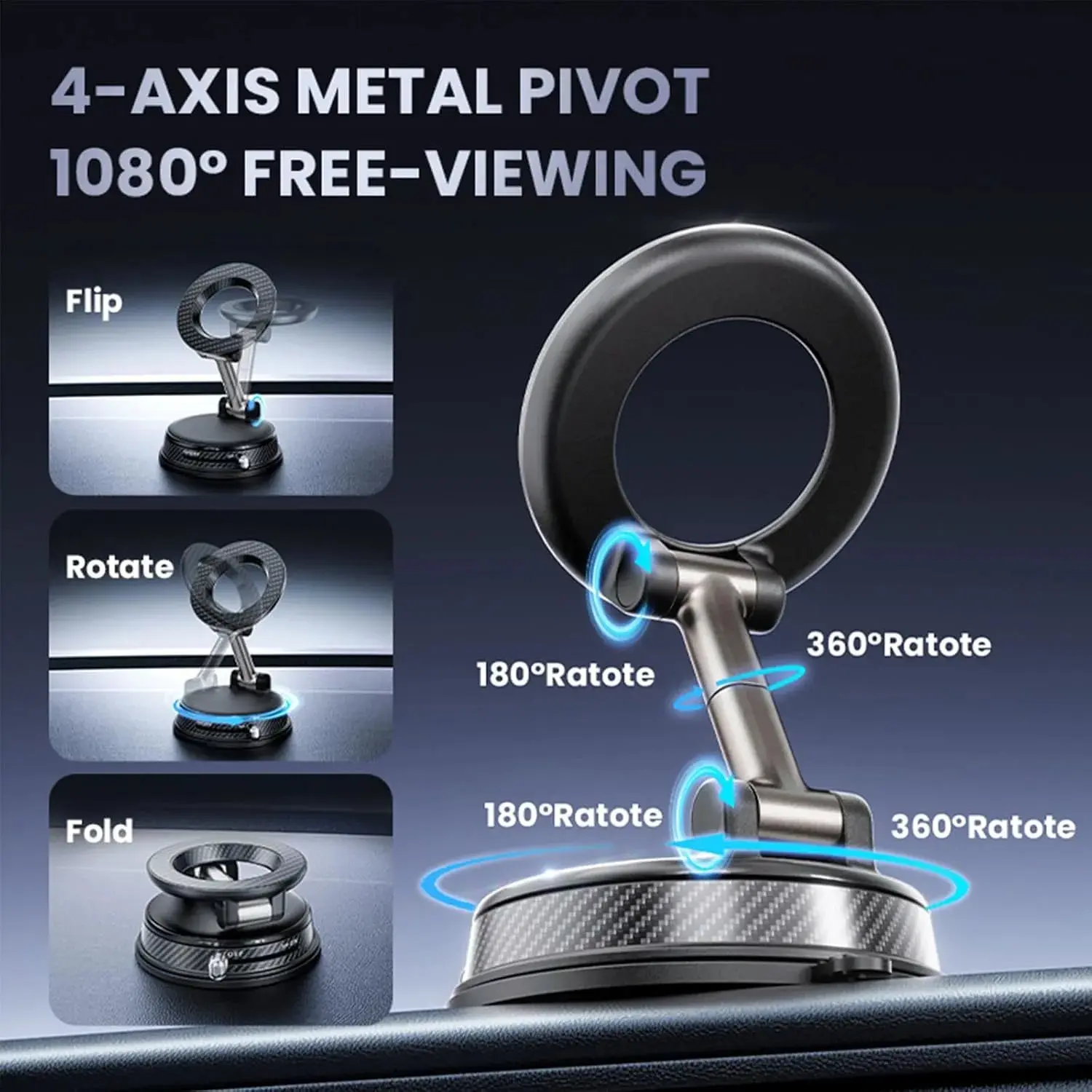 ·【Compact Design & Easy Maintenance】 This foldable phone stand for car doubles as a cell phone stand for your office, kitchen, or gym. If suction weakens, rinse and air dry—no sticky residue. Ideal for car stuff, car interior accessories, and accessories for your car. A premium vacuum magnetic phone holder backed by reliable service and durable materials
