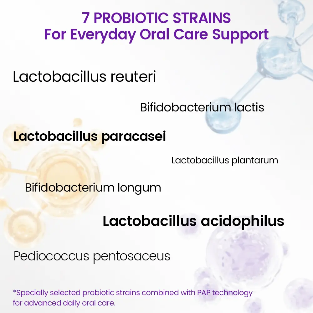 ·7 Probiotics: Contains 7 probiotics that support oral health and contribute to a healthier mouth.