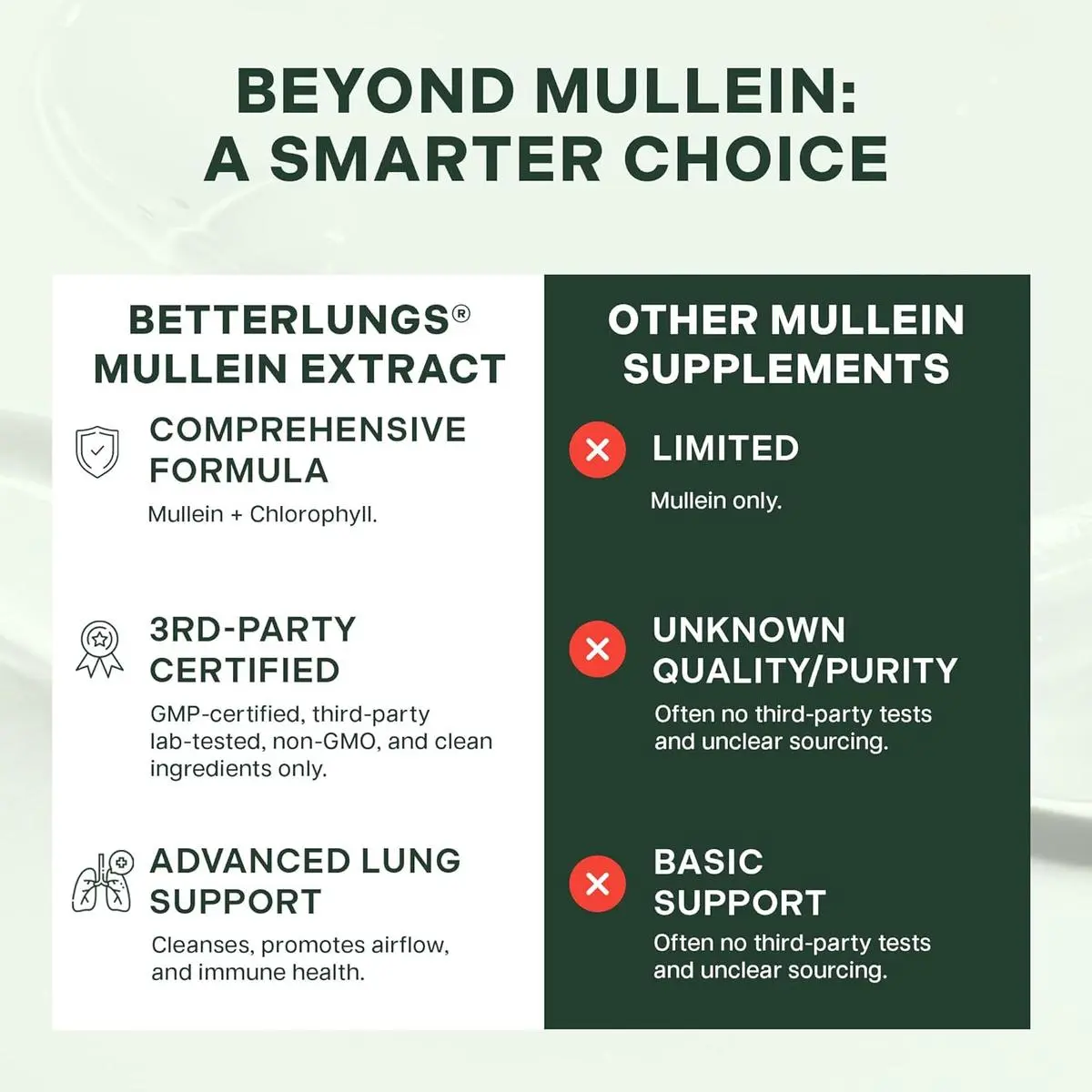 Betterbrand Mullein Drops for Lung Detox - 60ml Alcohol-Free Tincture with Chlorophyll - Supports Respiratory Health - 1 Month Supply - Natural Lung Detoxification - Healthcare, Vitamin