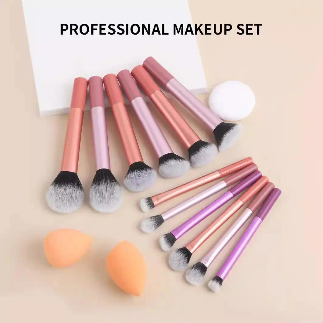 Professional Makeup Brush Set with 12 Brushes, 2 Beauty Sponges, 1 Powder Puff, Blush Brush, Loose Powder Brush, Artist Brush Set